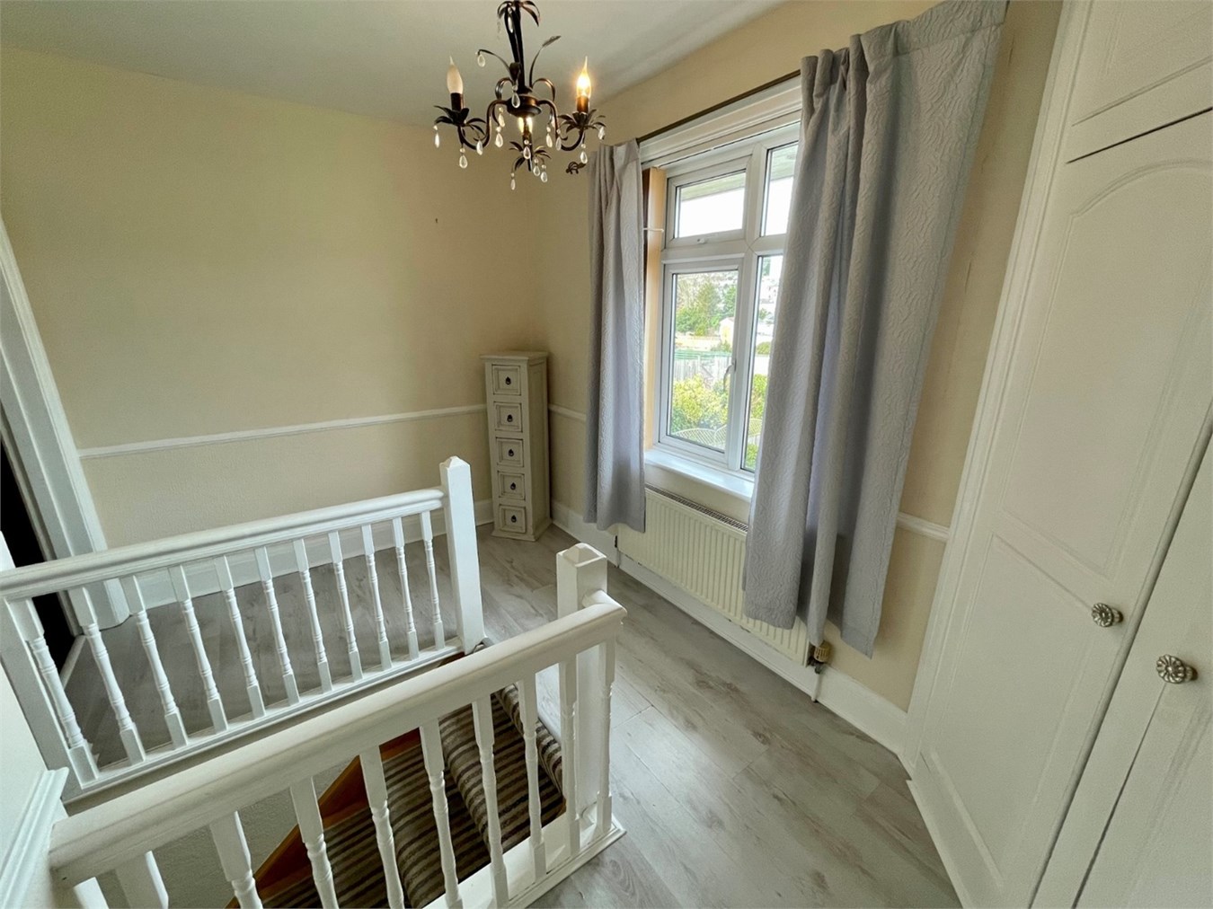 A spacious landing with upvc window to the rear and built in corner cupboard.