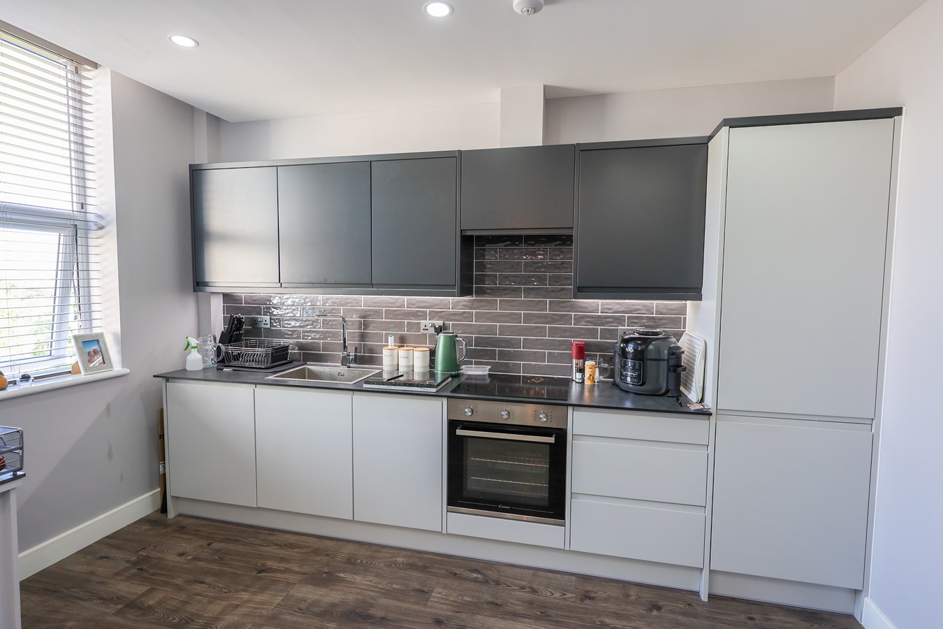 2.14m x 3.78m (7' 0" x 12' 5") Fitted inset stainless sink unit, built in electric oven and ceramic hob and extractor canopy, built in dishwasher and fridge freezer. The kitchen enjoys a good range of base units and high level cupboards.