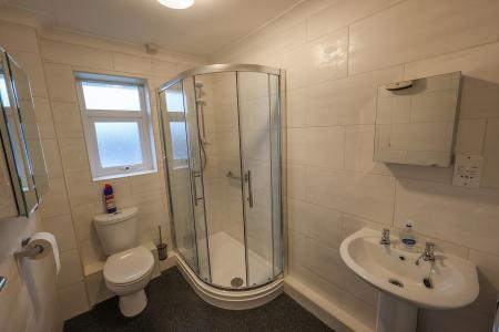 1.67 x 2.39 (5'5" x 7'10") - Upvc double glazed window to the front. Modern three piece white shower suite comprising low level flush WC , shower enclosure with glass shower door and wall mounted Mira electric shower, pedestal wash basin. Tiled walls, shaver socket. Night Storage Heater.