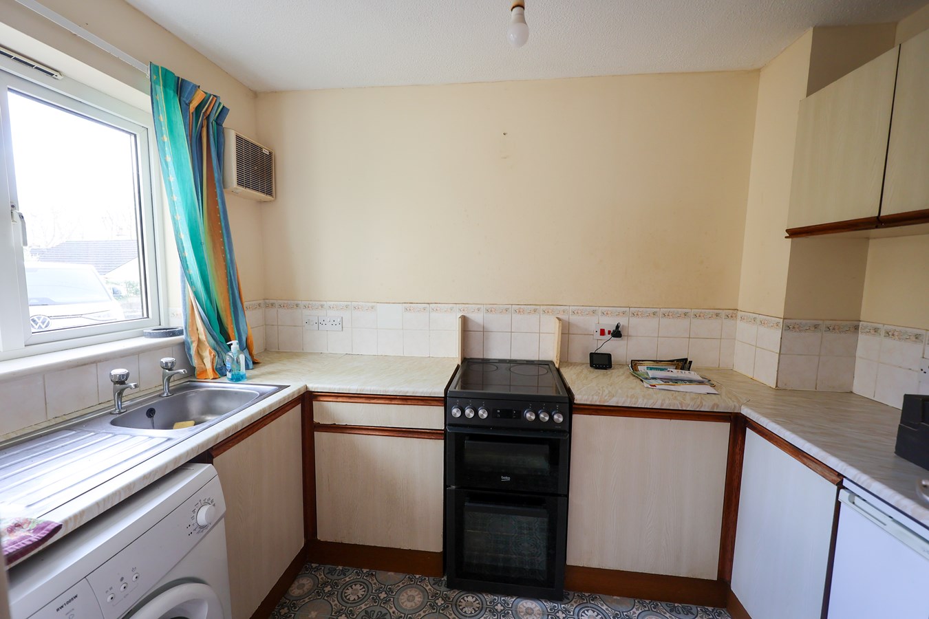 6' 3" x 9' 9" (1.91m x 2.97m) Fitted with base units and high level cupboards, space and plumbing for washing, space for cooker, extractor fan, space for fridge/freezer, window to the front.