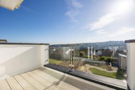 The thoughtfully designed interior includes an inviting entrance lobby leading to the galleried main hall, a stunning living room with a balcony ideal for enjoying the scenery, a versatile sitting room (or fifth bedroom), and a study/third bedroom. Additional features include a cloakroom, a utility room with access to the integral garage, and a well-equipped kitchen/breakfast room. Downstairs, there are two spacious double bedrooms, one of which is the primary suite with an en suite, a wardrobe, and a laundry room. A family bathroom completes the accommodation.