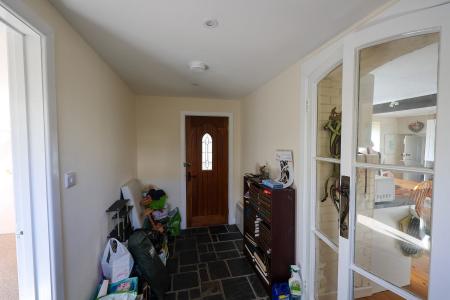 Featuring a part-glazed UPVC leaded light door, with a beautiful natural slate floor and a fitted cupboard for storage. A hardwood door with a glazed panel leads seamlessly into the utility area.