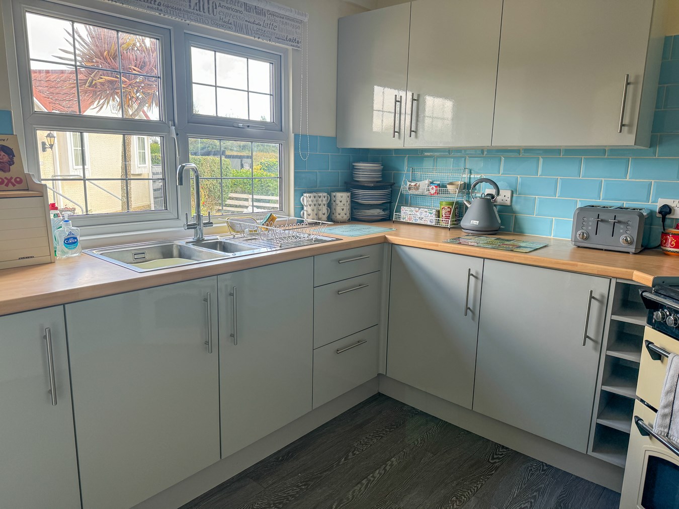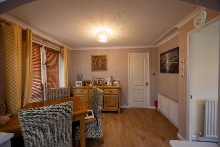 10' 4" x 9' 9" (3.15m x 2.97m) Space and plumbing for dishwasher, space for fridge and space for cooker, good range of base units finished in a light Grey with tiled splashback, window to the side, low voltage ceiling lighting, archway to the utility room.