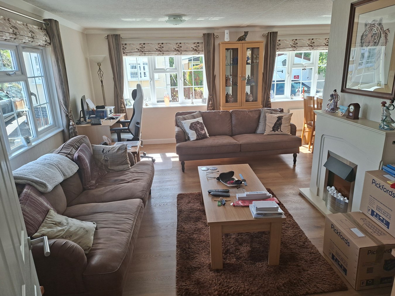 This beautifully presented, modern 2-bedroom park home is located on a highly sought-after site, just a stone's throw from the centre of Sticker village, on the western side of St Austell, offering easy access to Truro. Ready for immediate occupancy with no additional expense, this well-planned and spacious home offers generous proportions throughout. The accommodation includes a large L-shaped lounge/dining area, a well-fitted kitchen, a utility room, and two comfortable bedrooms. The master bedroom features an en suite bathroom, a walk-in wardrobe, and additional wardrobe and storage space. A well-appointed main shower room completes the interior. The property benefits from gas central heating and includes an outside parking space, a low-maintenance paved garden, and an artificial grass area. With the remainder of a 10-year guarantee (as the home was sited in 2016), you can enjoy peace of mind and reassurance for the years ahead.