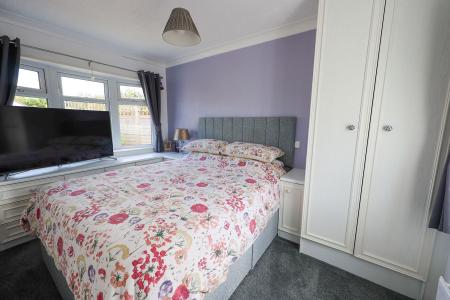 11' 0" x 7' 5" (3.35m x 2.26m) With fitted wardrobe cupboard, a range of drawers for storage, duel aspect windows, two bedside tables.