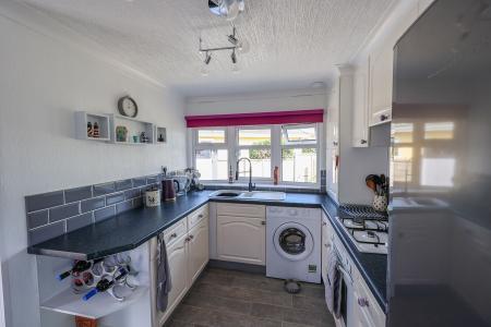 8' 1" x 11' 0" (2.46m x 3.35m) All newly fitted with a range of high gloss fronted units which include base units and high level cupboards, fitted gas four ring hob unit, electric oven, extractor canopy, tiled splashback, bow window to the side, second window, space and plumbing for a washing machine, worktop mounted cupboard housing a Baxi LPG gas fired boiler, space for fridge/freezer.