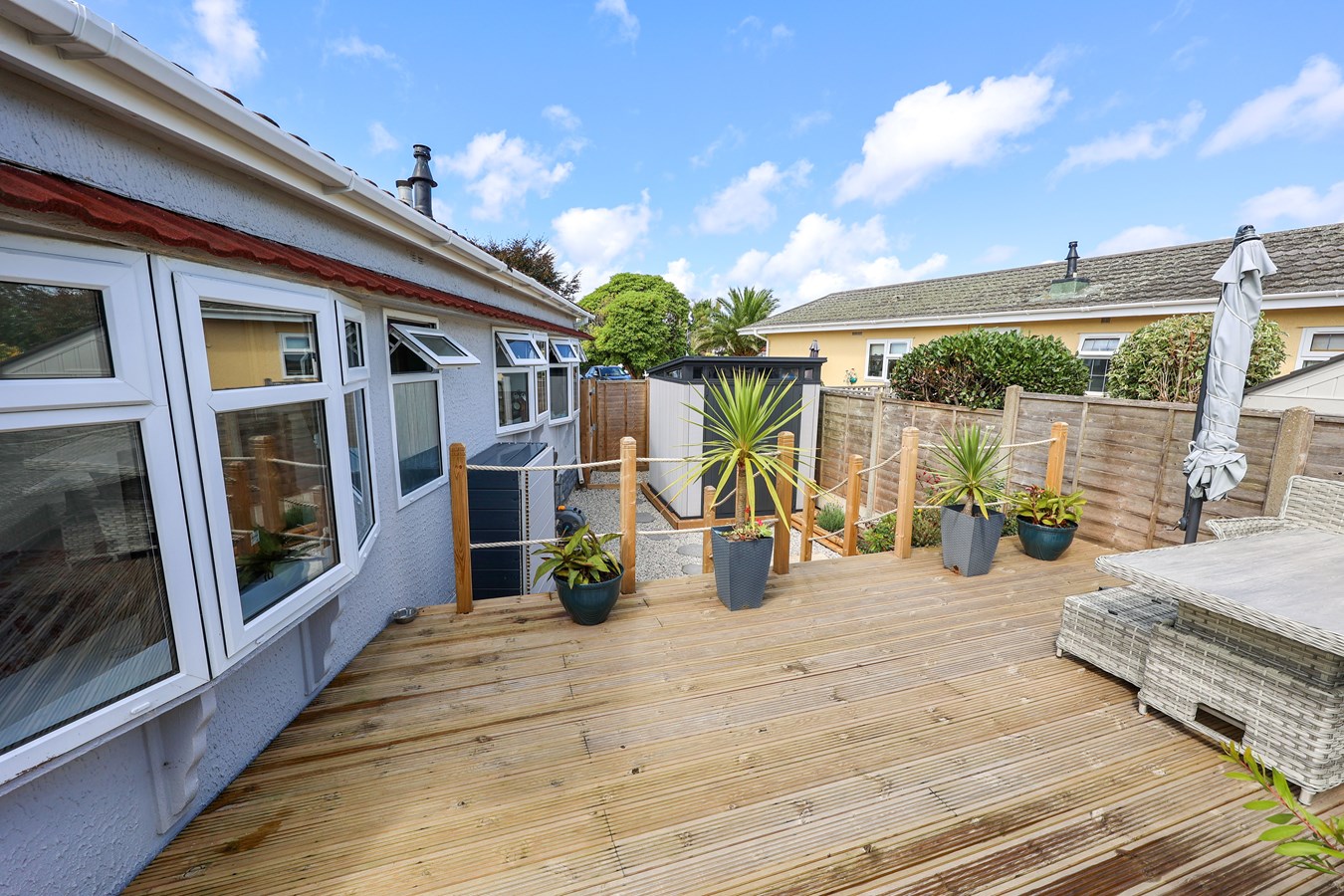 A well presented and refurbished single unit park home occupying a level position on this highly popular site situated on the fringe of Sticker village offering easy access to St Austell town and Truro. Ready to move into this home is just right for a couple or single person. Outside space has been optimised with timber decked patio and gravelled low maintenance garden areas which offer excellent privacy. Outside parking and a garage is optional which costs £30 per month in addition to the normal ground rent.