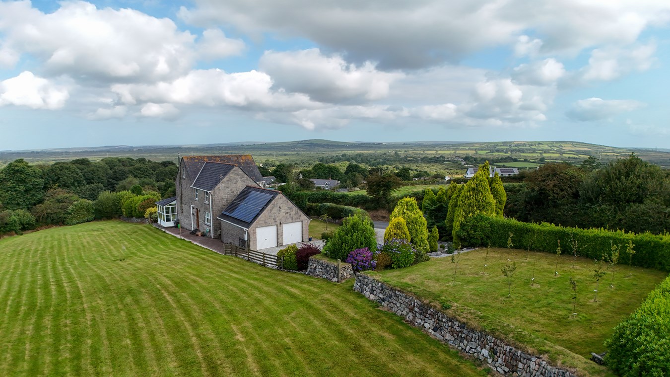 A beautifully presented and substantial detached residence, offering four spacious double bedrooms and standing proudly within its own grounds of approximately 1.2 acres. Surrounded by landscaped and manicured gardens, the property enjoys uninterrupted views across open farmland, the Goss Moor, and towards the dramatic North Cornwall coast—delivering a rare sense of privacy, space, and natural beauty.