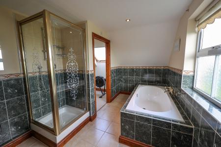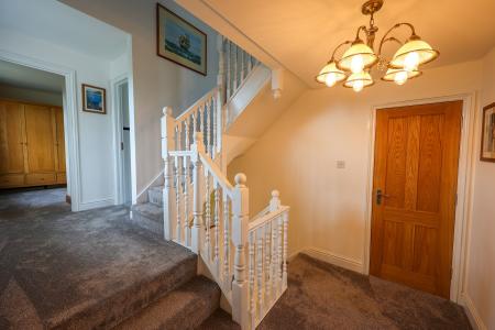 Designed for comfortable family living, the accommodation is arranged with care and presented in pristine condition throughout. A welcoming entrance hall leads to a recently refitted, luxurious kitchen, while a connecting lobby provides access to a double garage, study, and cloakroom. The generous lounge/dining room flows into a bright sun room, creating a seamless space for relaxation and entertaining. Upstairs, four large double bedrooms are complemented by a stylish main bathroom and a private en suite to the principal bedroom.
