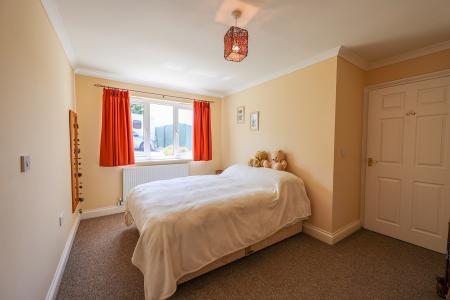 Positioned at the end of a quiet cul-de-sac, this property enjoys both front and rear enclosed gardens, ensuring privacy and tranquility. A detached garage and a dedicated parking space sit at the front, while a wooden fence to the left of the entrance enhances seclusion for the low-maintenance gravelled garden, complete with a timber decked area and an aluminum-framed greenhouse.