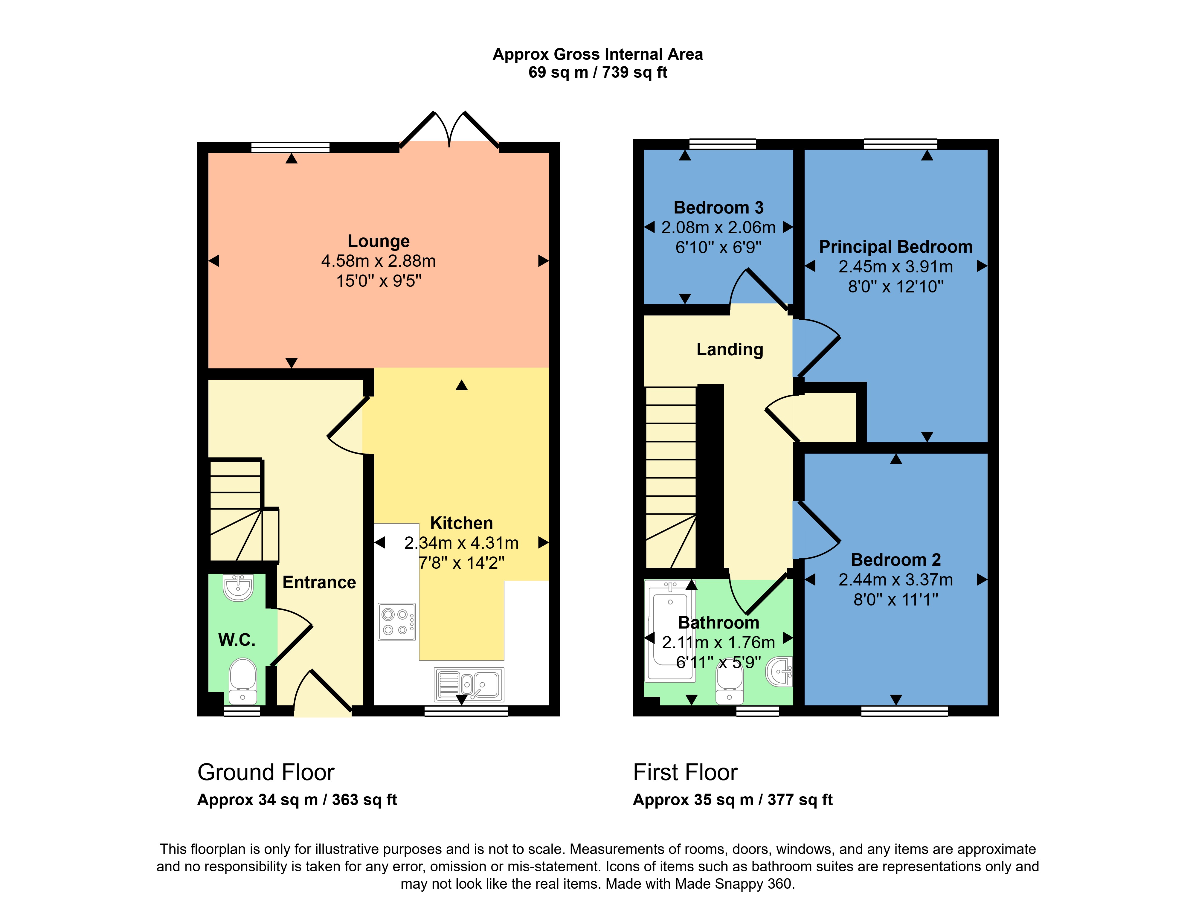 Bathroom 6'11" x 5'9" (2.1m x 1.75m).