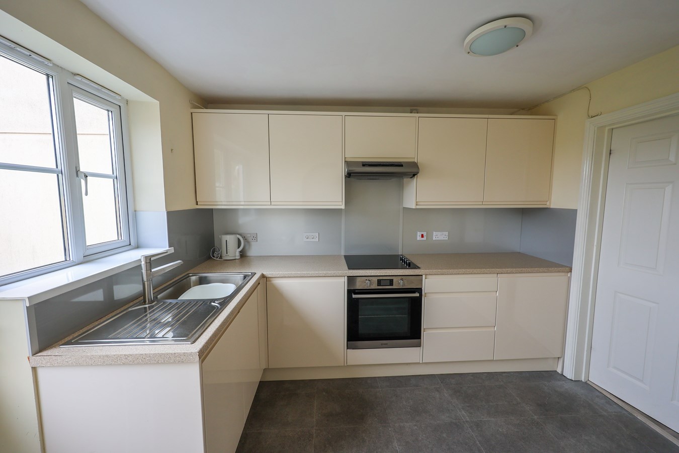 3.06m x 2.54m (10' 0" x 8' 4") With half glazed door and window to the rear, archway through to the utility area/cloakroom. Built in oven hob and extractor. fitted with a good range of high gloss base unit and high level cupboards.