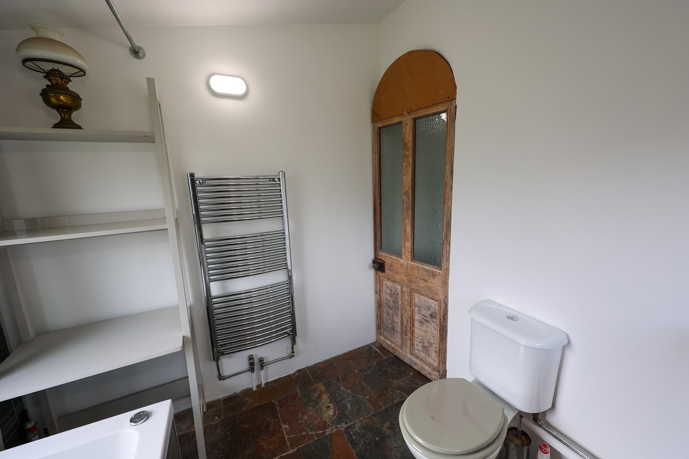 With an attractive stained glass window, this one is not Upvc, roof access, cupboard over the stairwell.