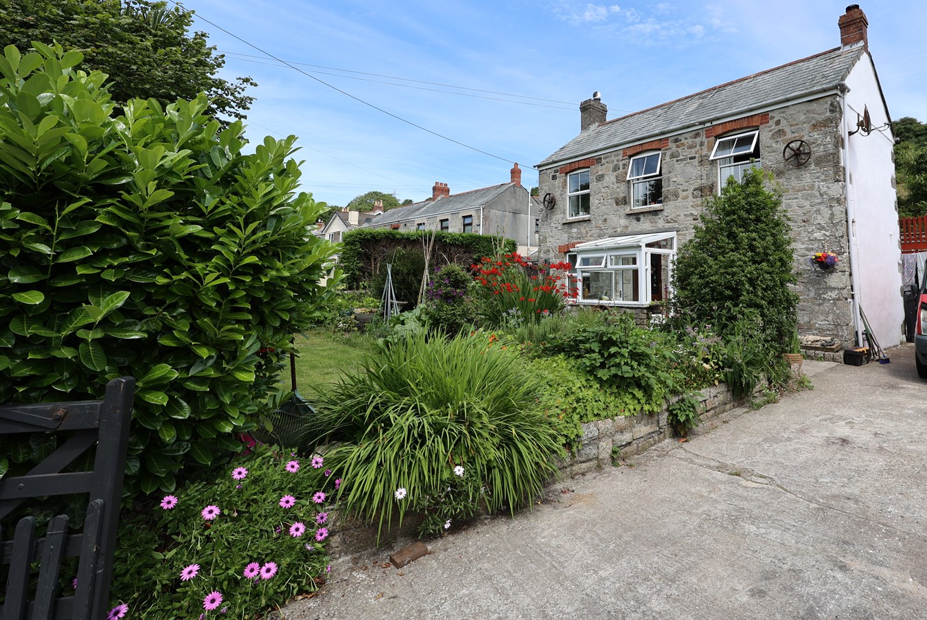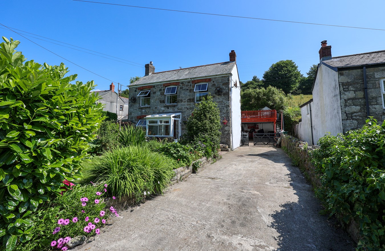 Tucked away in the peaceful hamlet of Ruddlemoor, just two miles north of St Austell, this detached four-bedroom character cottage offers the perfect blend of rural charm and everyday practicality. Backing onto open fields, the property enjoys a wonderful sense of seclusion and space, enhanced by a generous rear extension that includes a double garage and a covered double car port—topped with a spacious decked patio ideal for outdoor dining and enjoying the surrounding countryside.