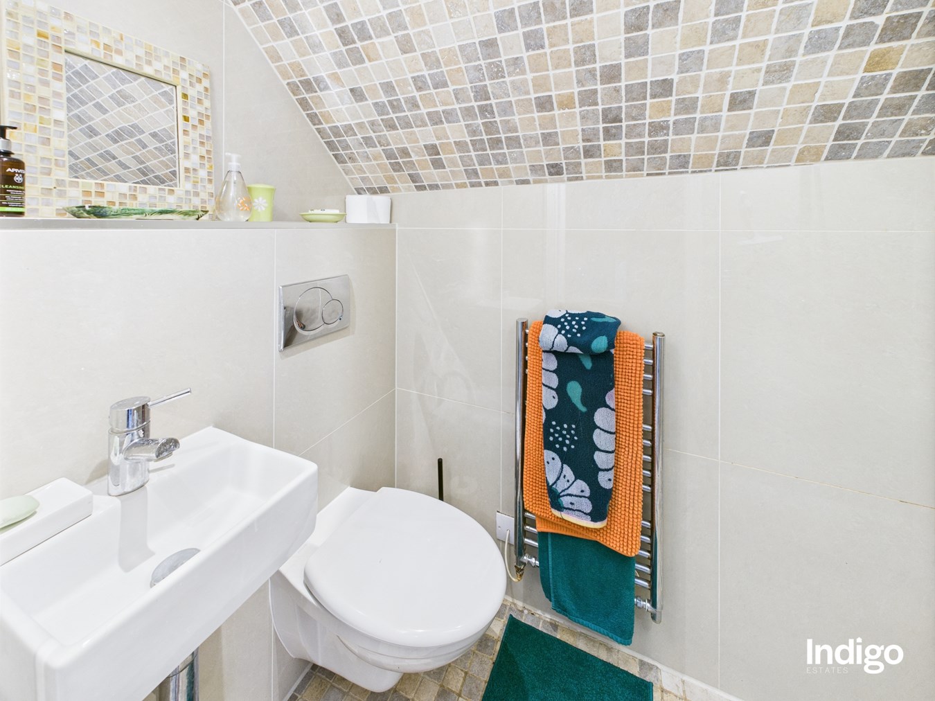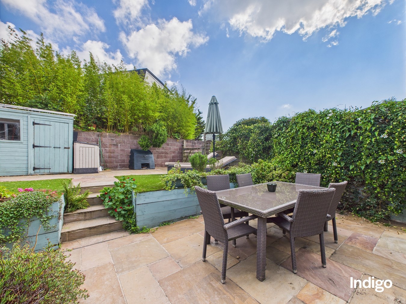 Upstairs, two further spacious double bedrooms and a second bathroom complete the internal accommodation. Outside, the garden has been designed with entertaining in mind, a lower paved terrace provides an ideal setting for al fresco dining, while a raised artificial lawn with sheds and additional paved areas ensure practicality with low maintenance.