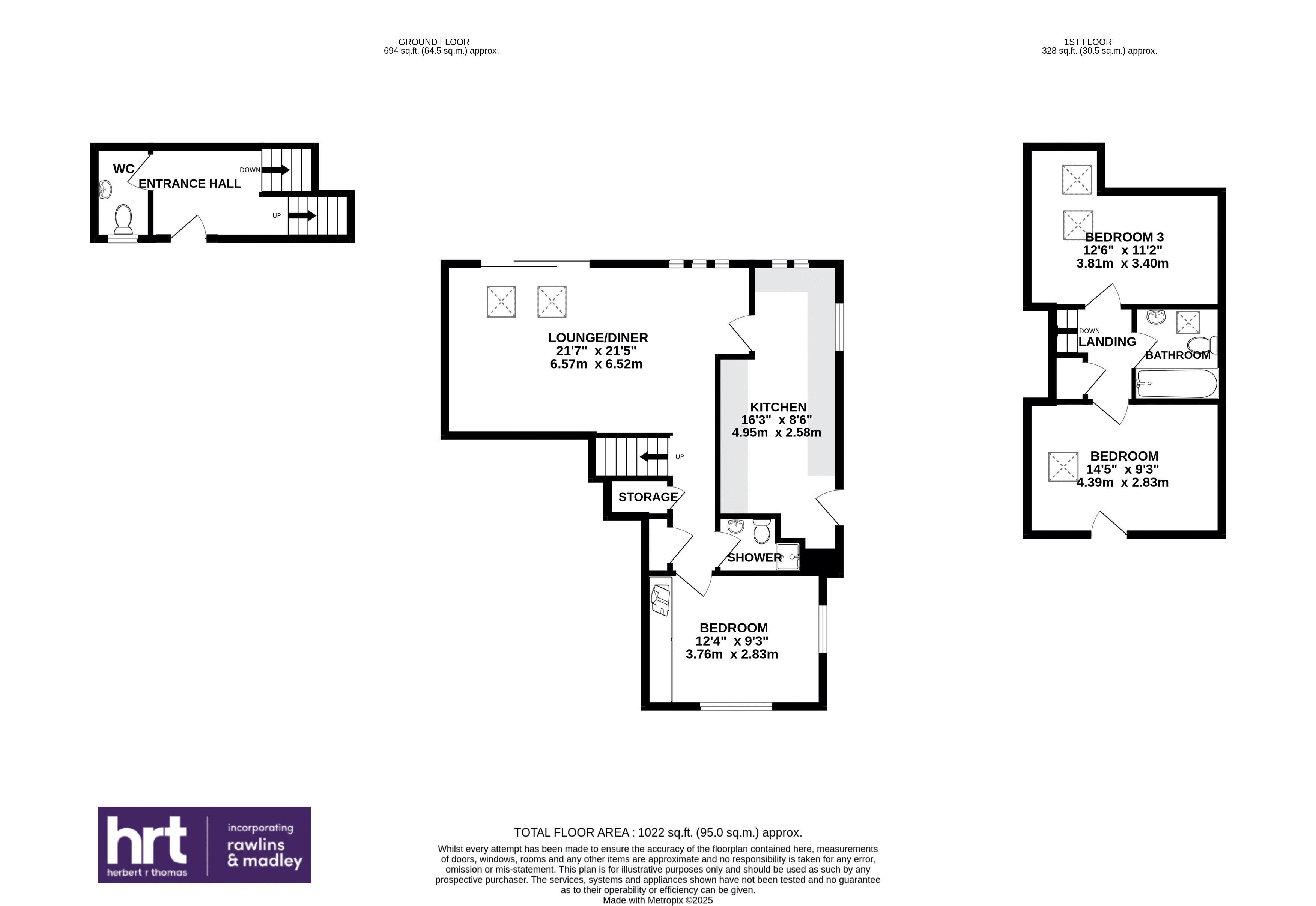 - Three bedrooms, family bathroom, shower room and separate cloakroom.