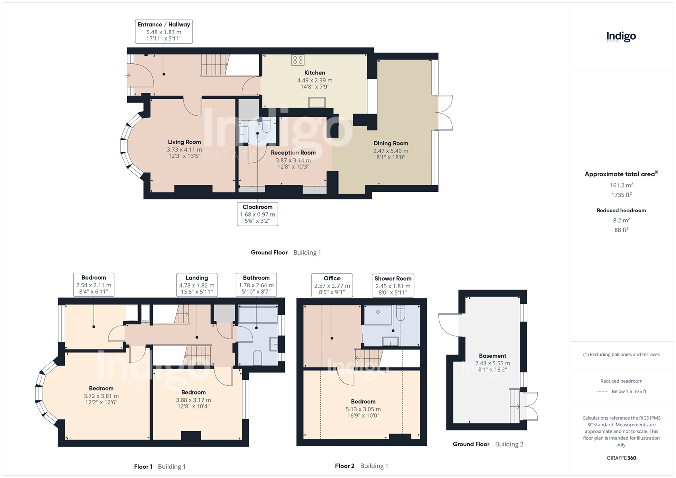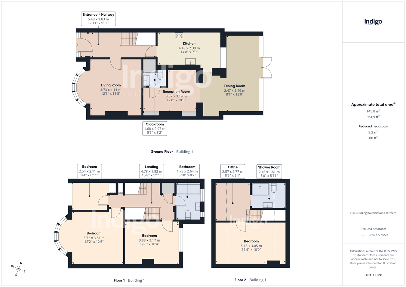 - Two reception rooms