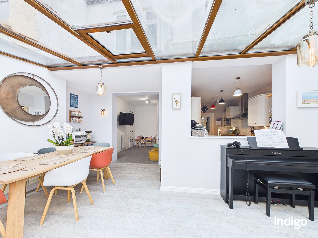 The property comprises four well-proportioned bedrooms and two bathrooms, complemented by two reception rooms providing flexible living and entertaining spaces. At the heart of the home is an open-concept fitted kitchen with a dedicated dining area, perfect for family life and gatherings, along with a separate study or office ideal for working from home.