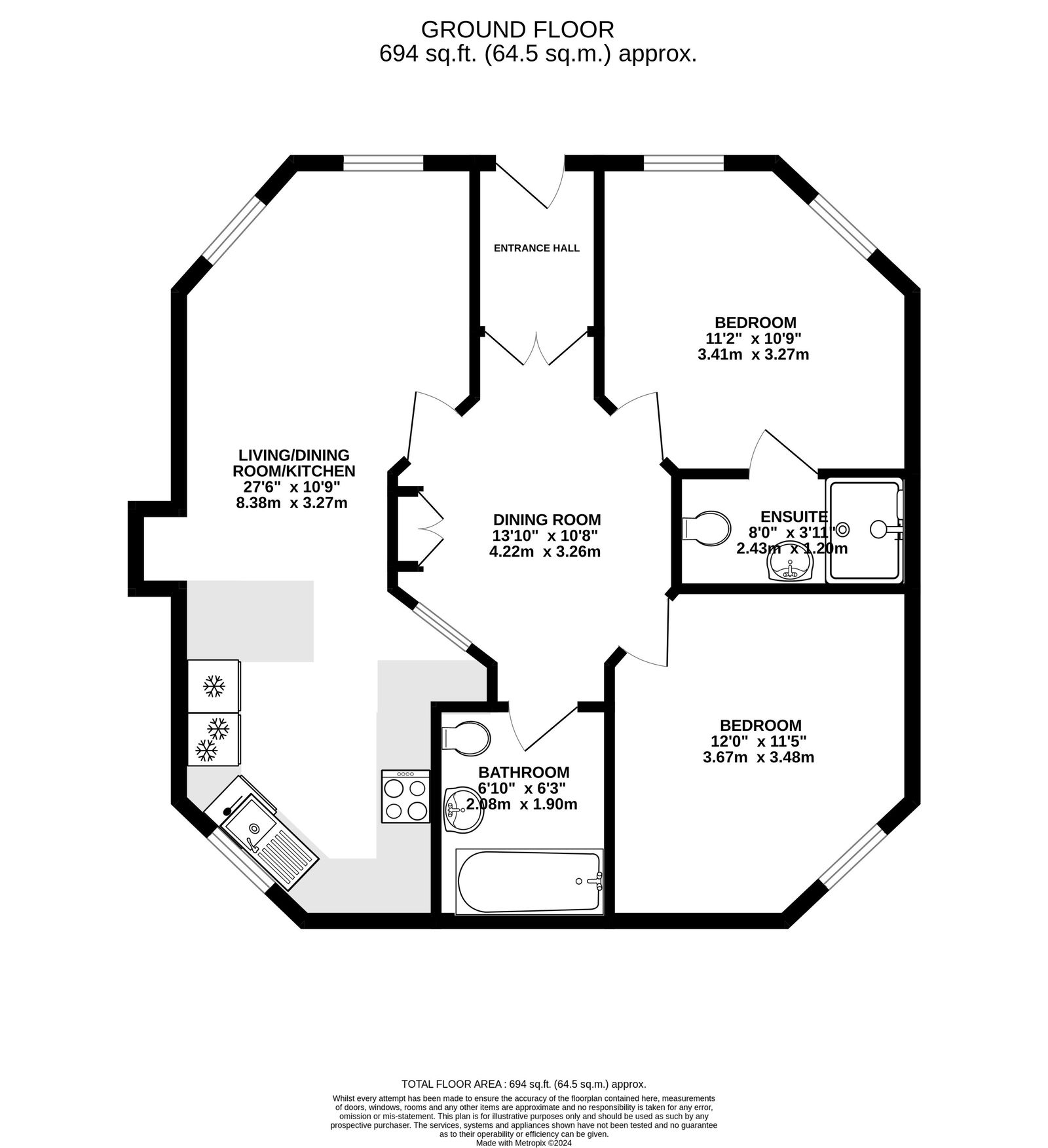 ACCOMMODATION WITH ALL MEASUREMENTS BEING APPROXIMATE: