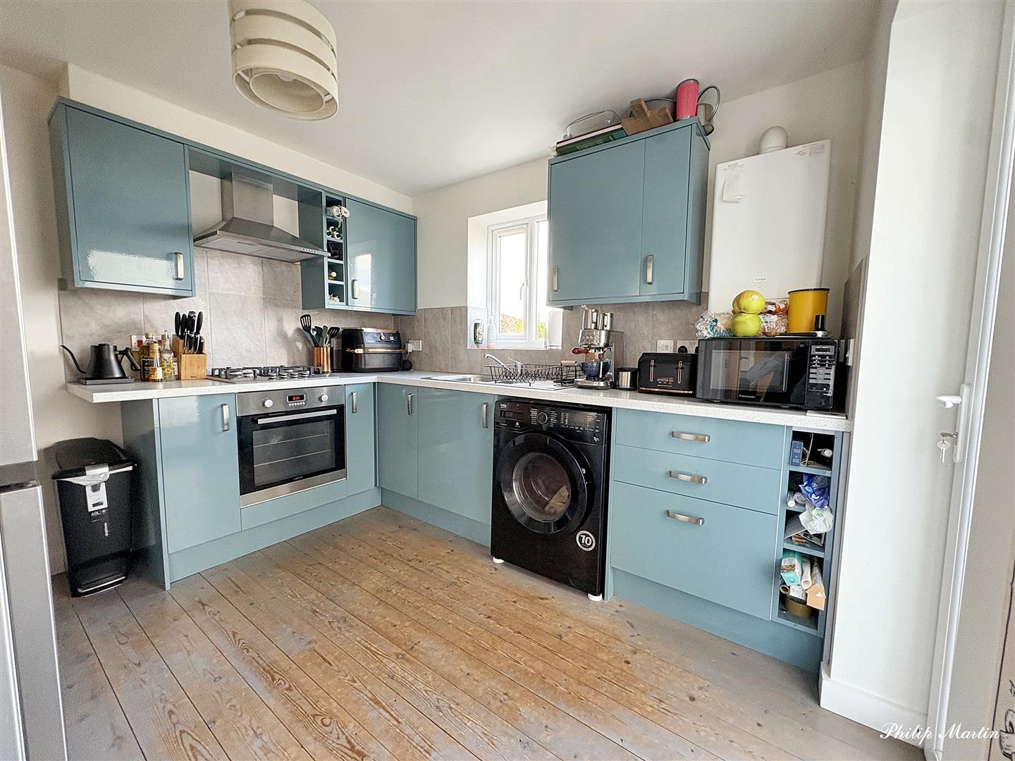 Kitchen - 2.99m x 2.79m (9'9" x 9'1" ) - Comprising a range of base and eye level units with a worktop over and tiled splashbacks. Inset sink and drainer with window overlooking rear garden and door to patio. Integrated electric oven and gas hob with extractor fan over.