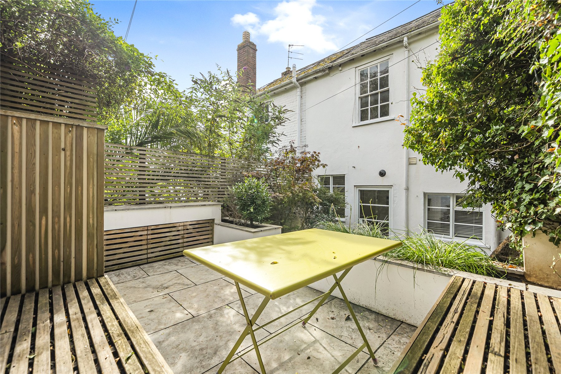 On the first floor you arrive onto a bright landing leading to a stylish family bathroom with a bath and overhead shower. From here, a crittall glazed door gives access to the rear garden, which features a pleasant patio area framed by mature shrubs. There is an upper seating area with a mature apple tree and views of the historic Ironbridge. The principal room on this level is currently used as a generous living space but would be equally suited as the main bedroom.