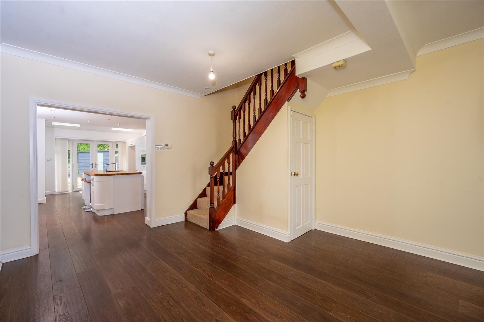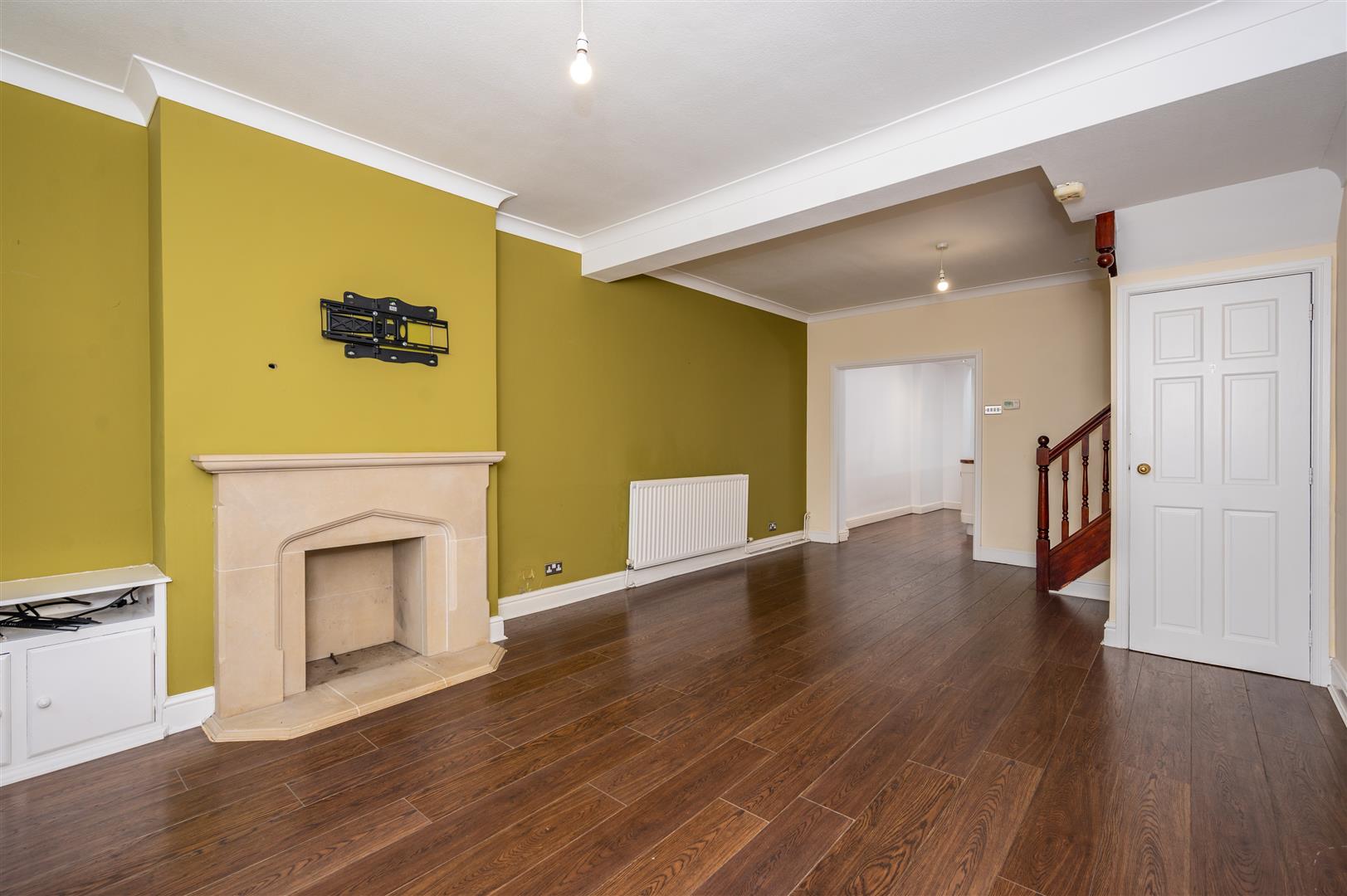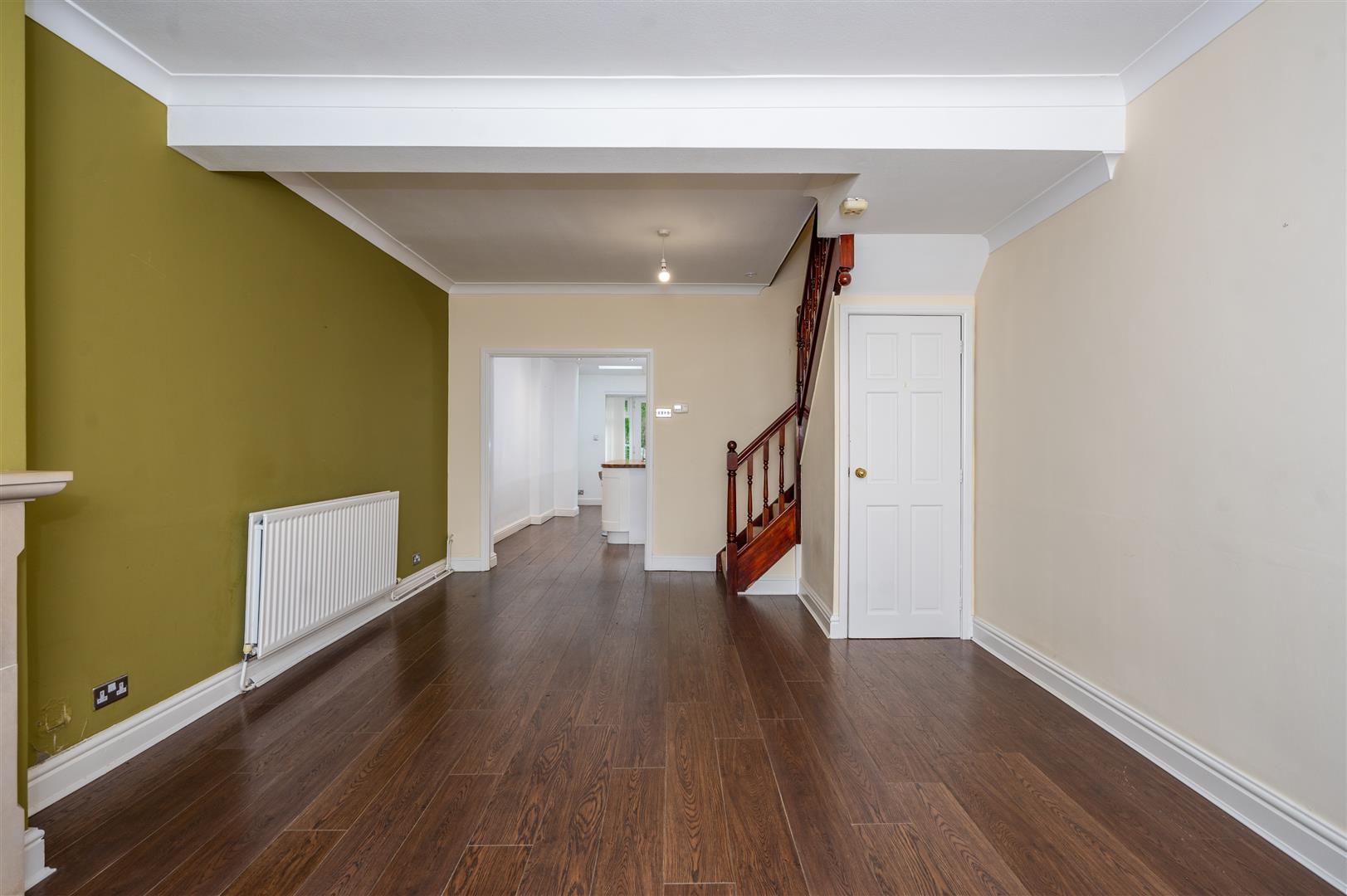 6.62 x 3.86 (21'8" x 12'7") - Double glazed window to the front elevation, electric fire set in feature surround, stairs to first floor, under stairs storage cupboard, build in cupboard housing metres, two radiators, opening into breakfast kitchen.
