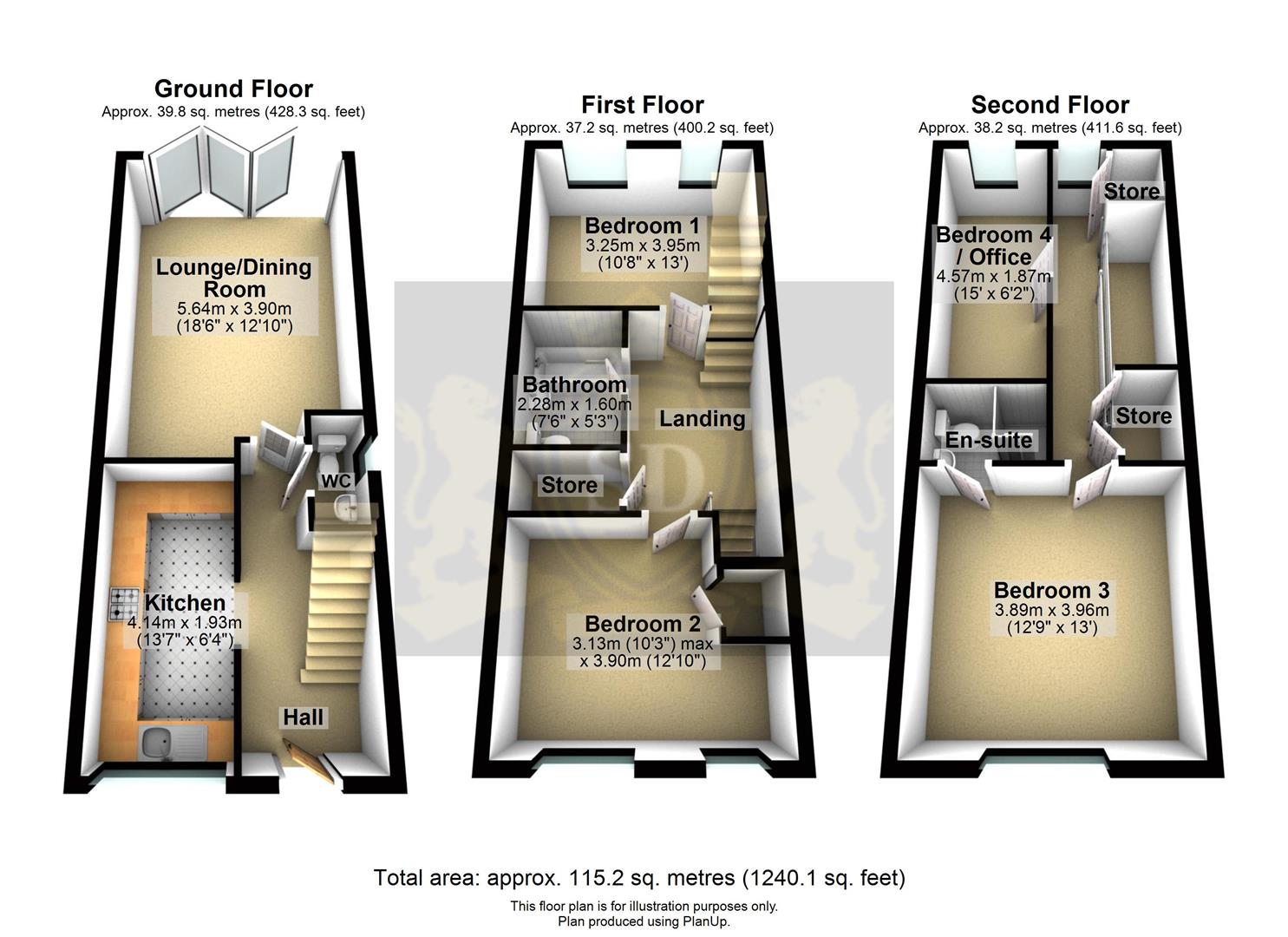 Internally the home is tastefully decorated and comprises entrance, hallway, kitchen (with integrated appliances, downstairs w/c, through lounge dining room with bi-folding doors leading onto a raised deck and the rear garden beyond. The second floor has two double bedrooms and a bespoke family bathroom. The third floor comprises of the master suite with en suite shower room alongside a fourth bedroom which is currently set up as a home office / study.