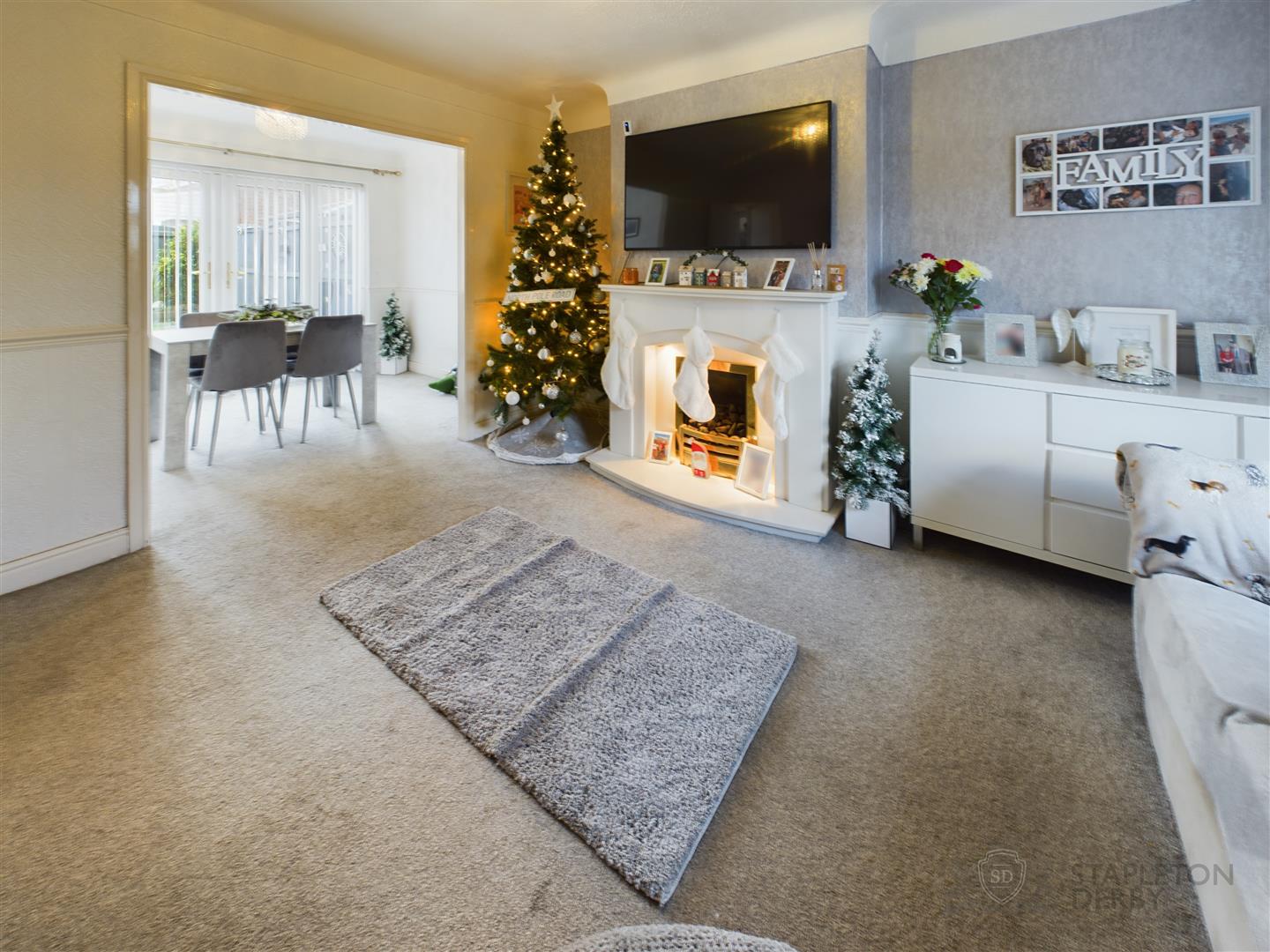 The layout is perfect for a family, there is an open-plan lounge diner, which makes for a perfect setting for both relaxation and entertaining. The layout allows for a seamless flow between the hallway, kitchen and living/dining areas, creating a warm and inviting atmosphere. Natural light floods the space, enhancing the sense of openness and warmth.