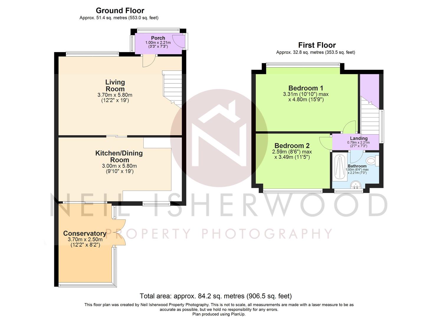 The first floor features two generously sized bedrooms, providing ample space for rest and privacy. A family bathroom completes the accommodation, ensuring all essential facilities are conveniently located.
