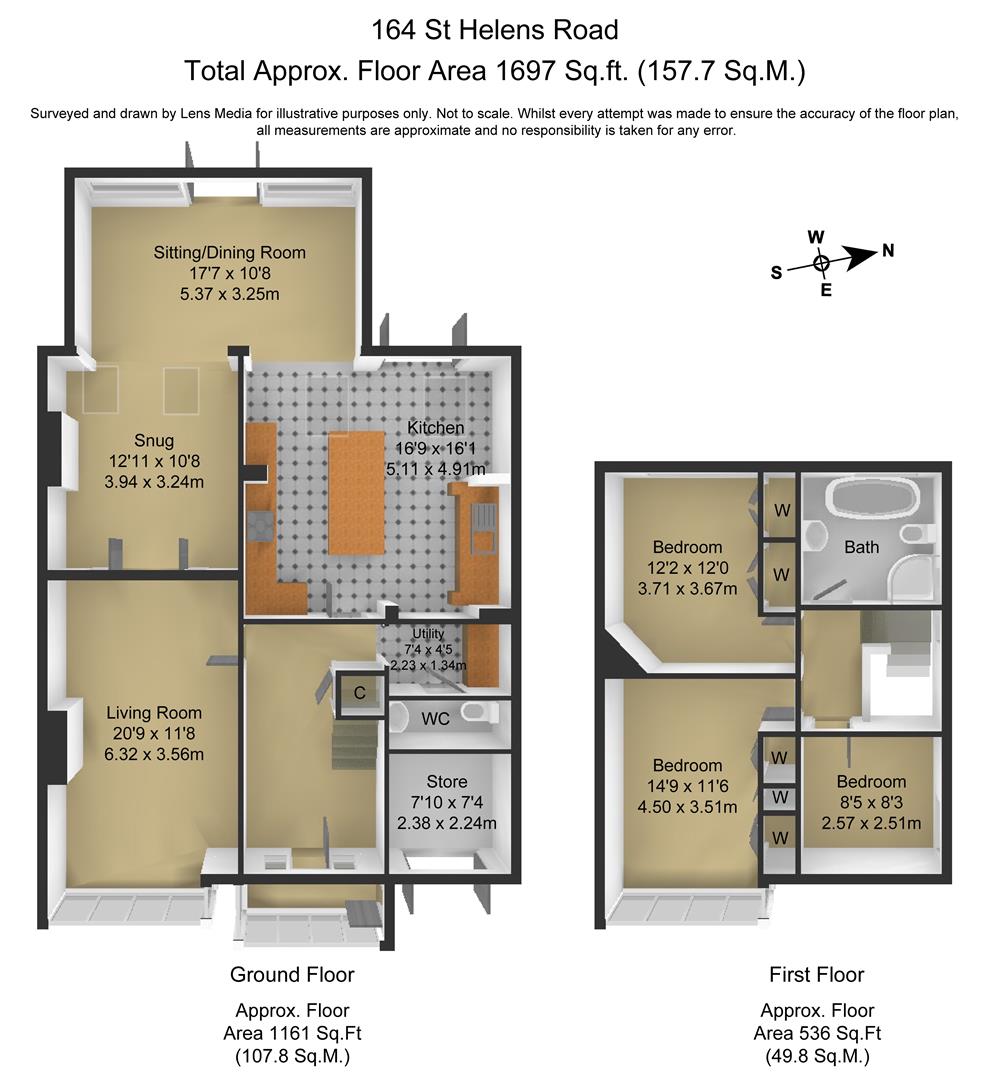 Internally the home is tastefully decorated with a blend of traditional period features & contemporary design and comprises, entrance porch, spacious hallway, downstairs w/c, utility, large open plan kitchen, sitting/dining room with underfloor heating, snug with cast iron fire place and large living room with a log burner. To the first floor is three bedrooms all with built in wardrobes and a family bathroom with shower and free standing bath. Externally, the property offers off road parking to the front with attached garage for storage. To the rear, a mature garden on a wide plot and not overlooked also consisting of a decked area perfect for al fresco dining.