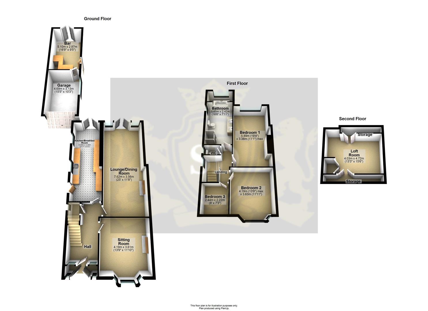 Briefly comprising; entrance porch, entrance hallway, lounge, front sitting room and beautiful kitchen. To the first floor there are three bedrooms and a stunning contemporary bathroom with 'Jacuzzi' bath. A loft room gives useful additional space.