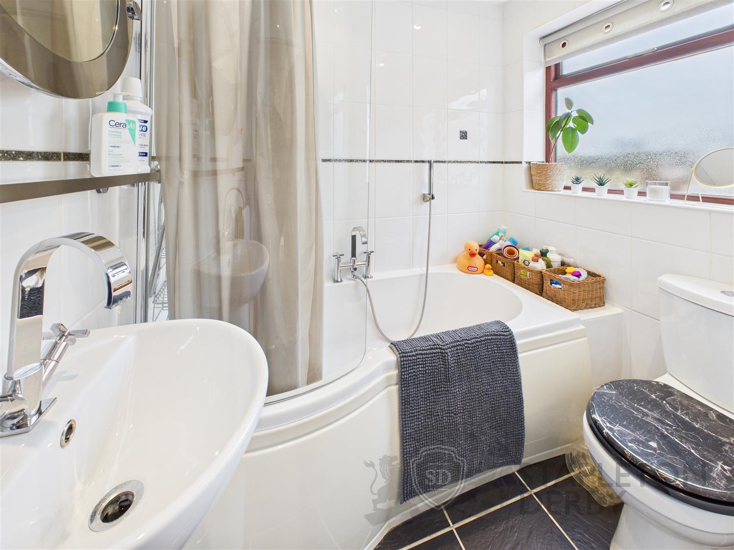 Inside, the property comprises a welcoming porch and hallway leading to a spacious living room, a separate dining room, and a well-appointed kitchen. There is also a downstairs toilet and a bright conservatory, providing additional living space. Upstairs, you’ll find three generously sized bedrooms and a modern family bathroom.