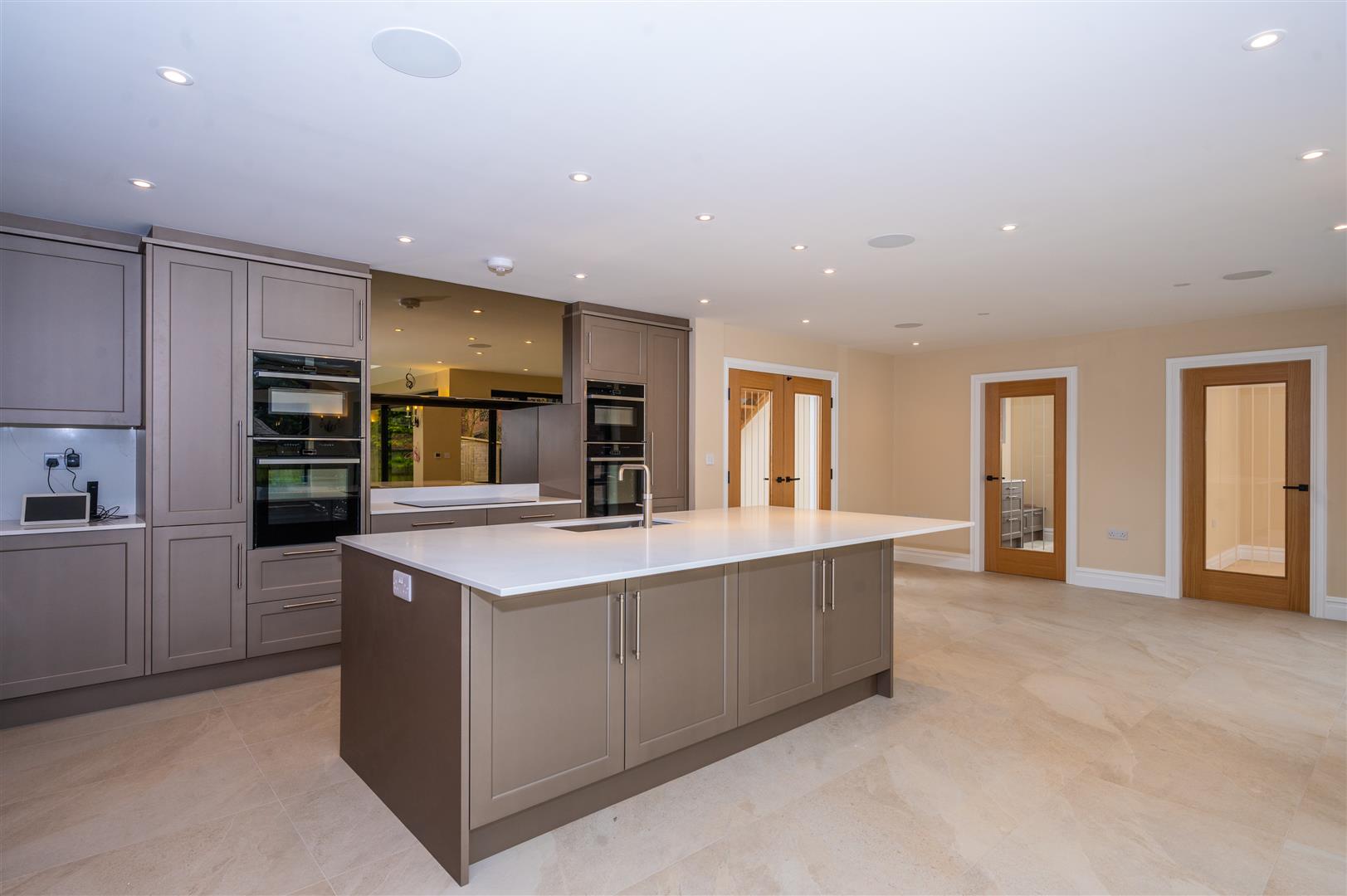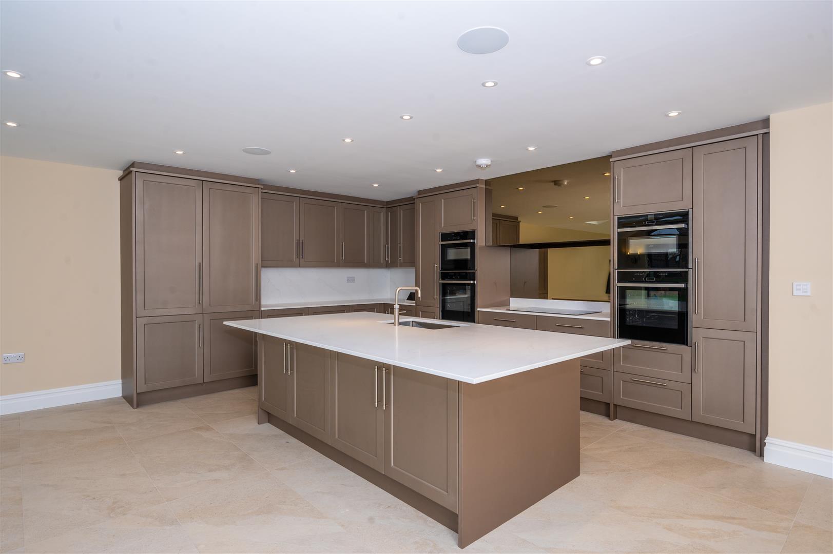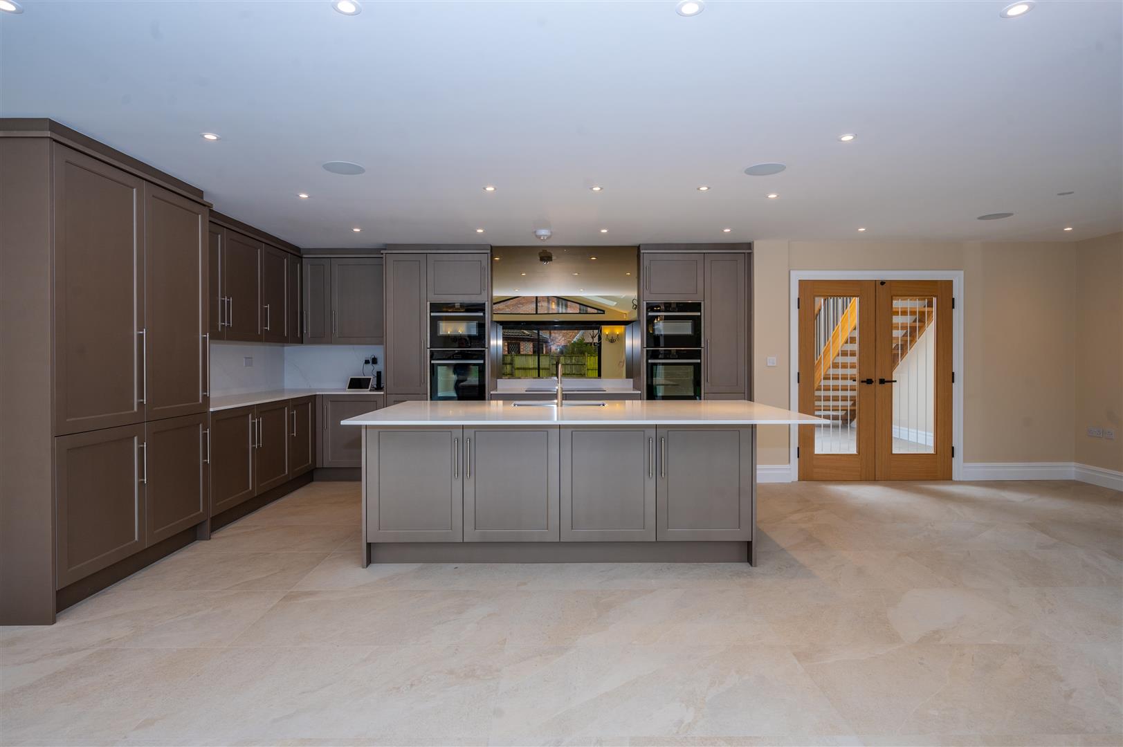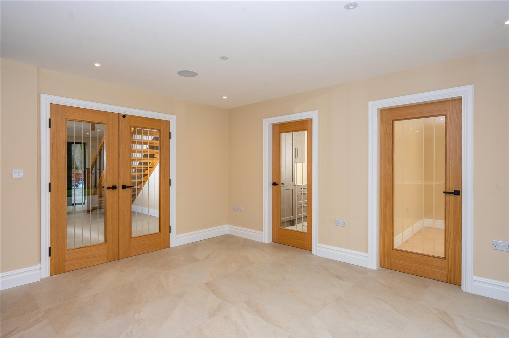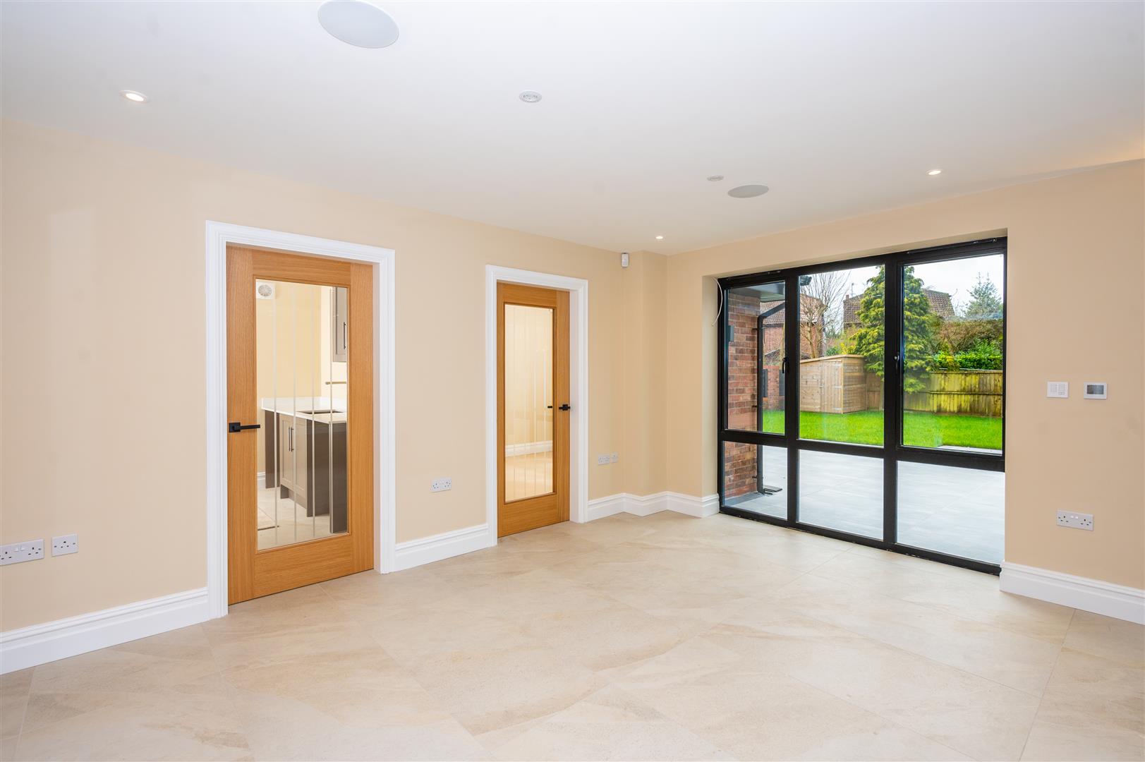 The ground floor is meticulously arranged to seamlessly blend entertainment areas with spaces for relaxation. Three expansive reception rooms offer versatility, accompanied by a spacious 37-square foot open-plan family dining kitchen. The kitchen boasts top-of-the-line integrated NEFF appliances and central feature island. This state-of-the-art kitchen flows into a sunlit living area, enhanced by impressive sliding patio doors. The living space effortlessly extends outdoors through multiple sets of fully opening sliding patio doors, leading to a premium sandstone patio terrace that envelops the property, creating a seamless transition between indoor and outdoor living. On the first floor, four luxurious double bedrooms await, each meticulously appointed with lavish en-suite bathroom facilities. Ascending to the second floor, you'll discover bedroom five with its own en-suite, alongside two additional rooms, offering versatile potential for various needs.