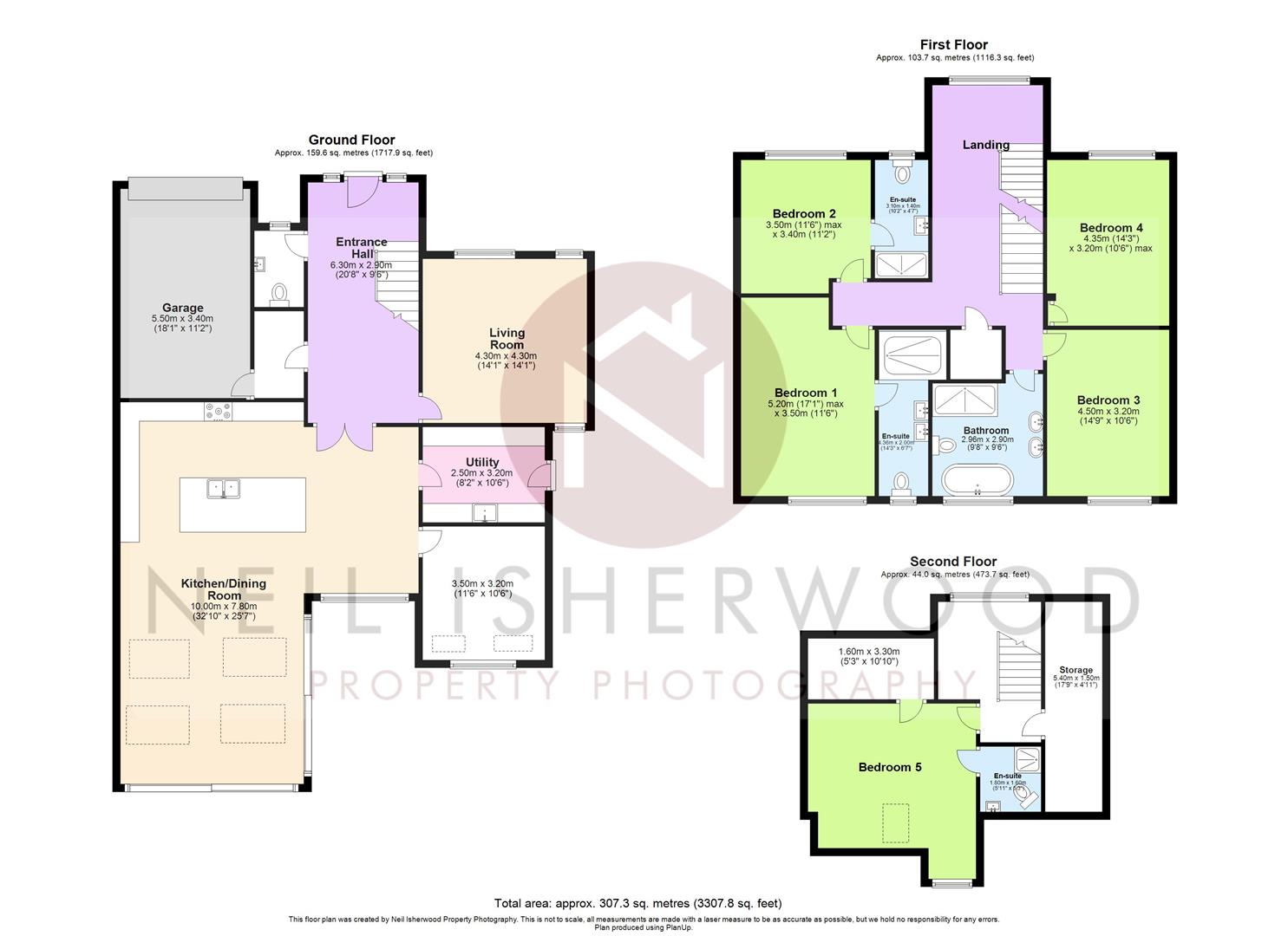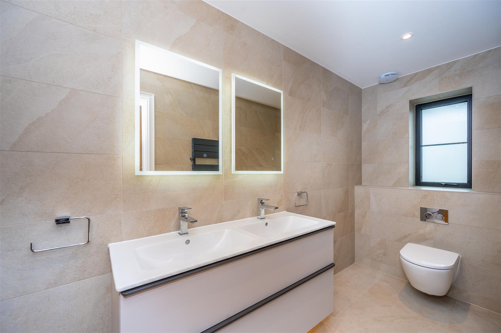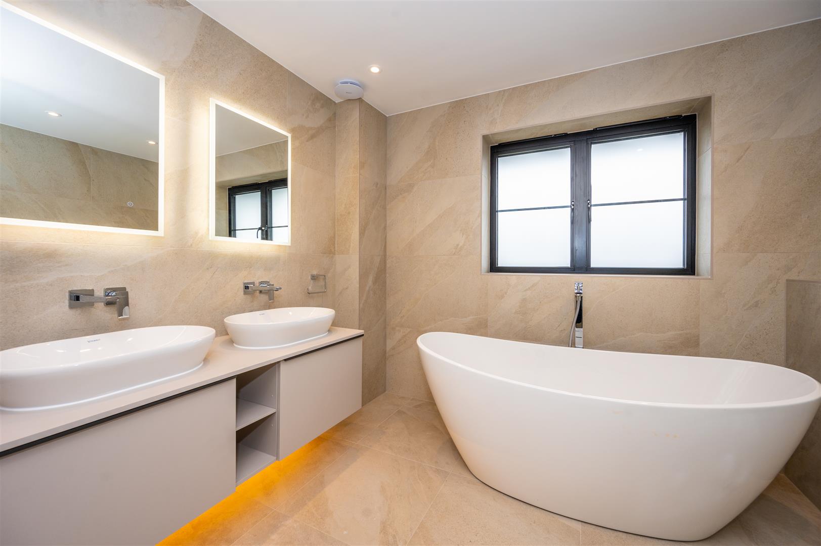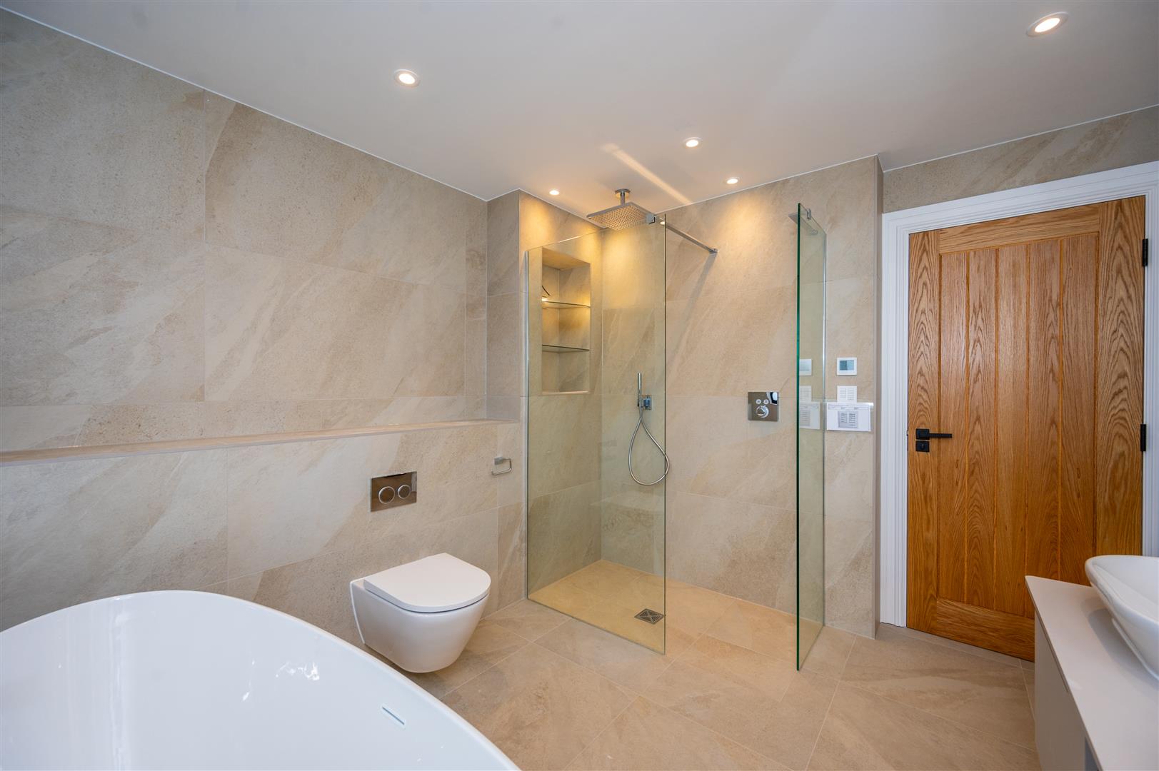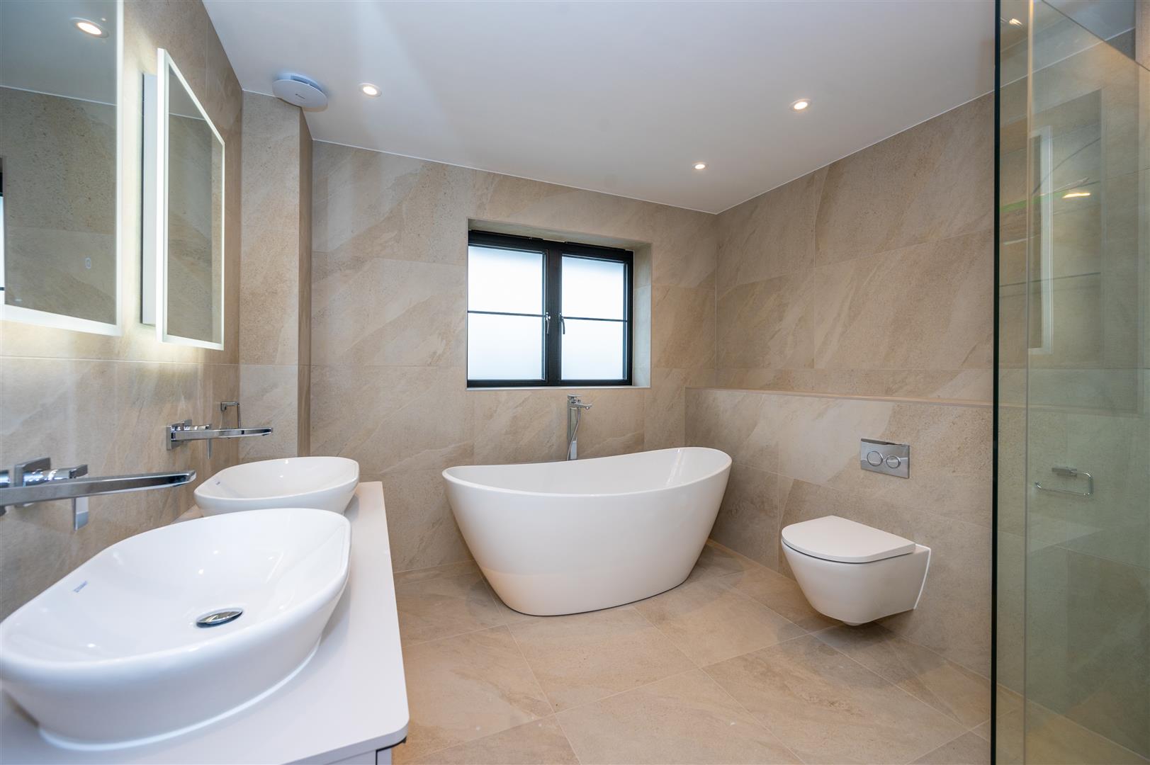The ground floor is meticulously arranged to seamlessly blend entertainment areas with spaces for relaxation. Three expansive reception rooms offer versatility, accompanied by a spacious 37-square foot open-plan family dining kitchen. The kitchen boasts top-of-the-line integrated NEFF appliances and central feature island. This state-of-the-art kitchen flows into a sunlit living area, enhanced by impressive sliding patio doors. The living space effortlessly extends outdoors through multiple sets of fully opening sliding patio doors, leading to a premium sandstone patio terrace that envelops the property, creating a seamless transition between indoor and outdoor living. On the first floor, four luxurious double bedrooms await, each meticulously appointed with lavish en-suite bathroom facilities. Ascending to the second floor, you'll discover bedroom five with its own en-suite, alongside two additional rooms, offering versatile potential for various needs.