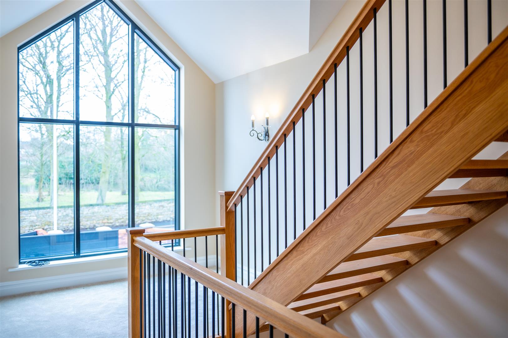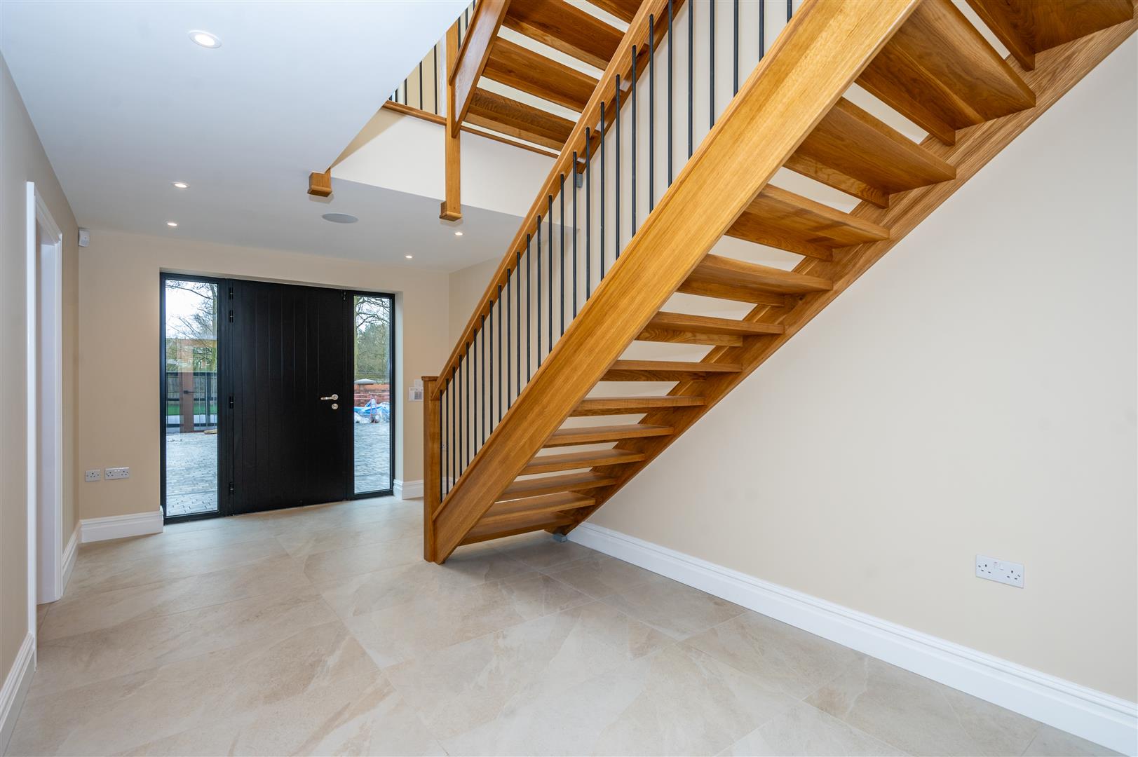 Stapleton Derby proudly presents an extraordinary opportunity to own this flawless five-bedroom, detached, self-built, executive family residence, nestled in the tranquil beauty of rural Higher Lane in Rainford. This newly constructed, luxurious property has been meticulously designed to the highest standards, spanning three levels and captivating from every perspective, with a stunning bespoke American Oak central staircase serving as its centerpiece, an array of smart technology and sustainable living.