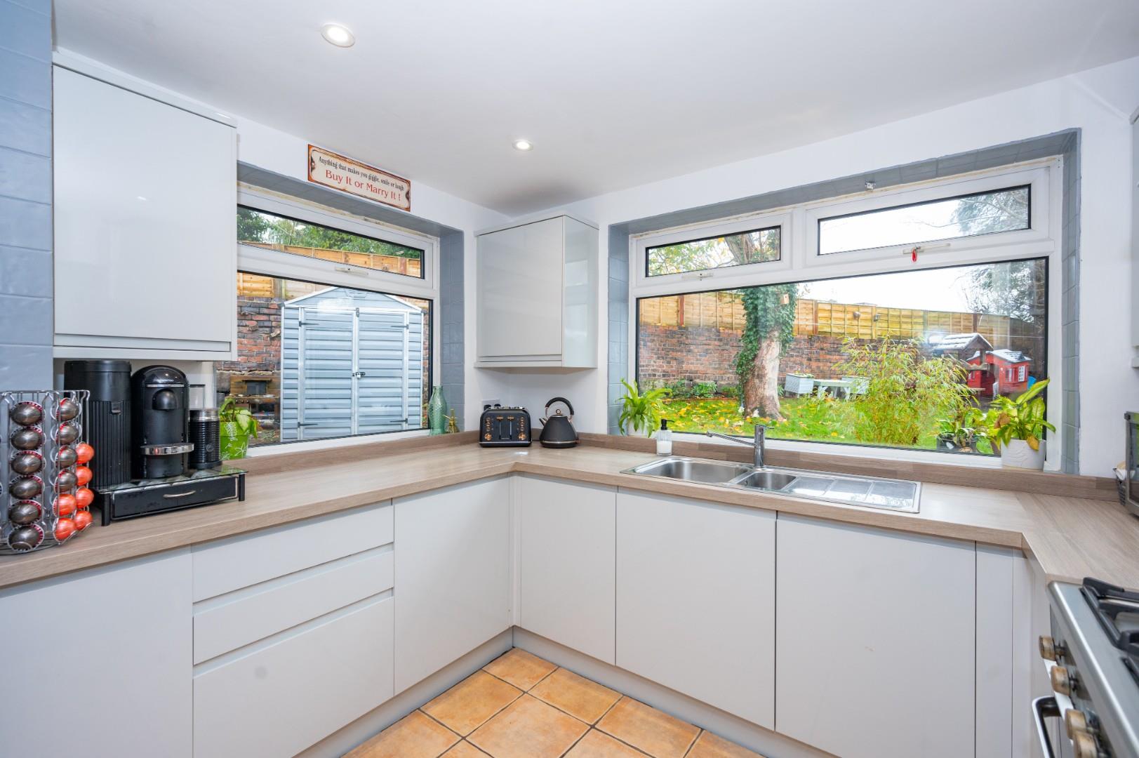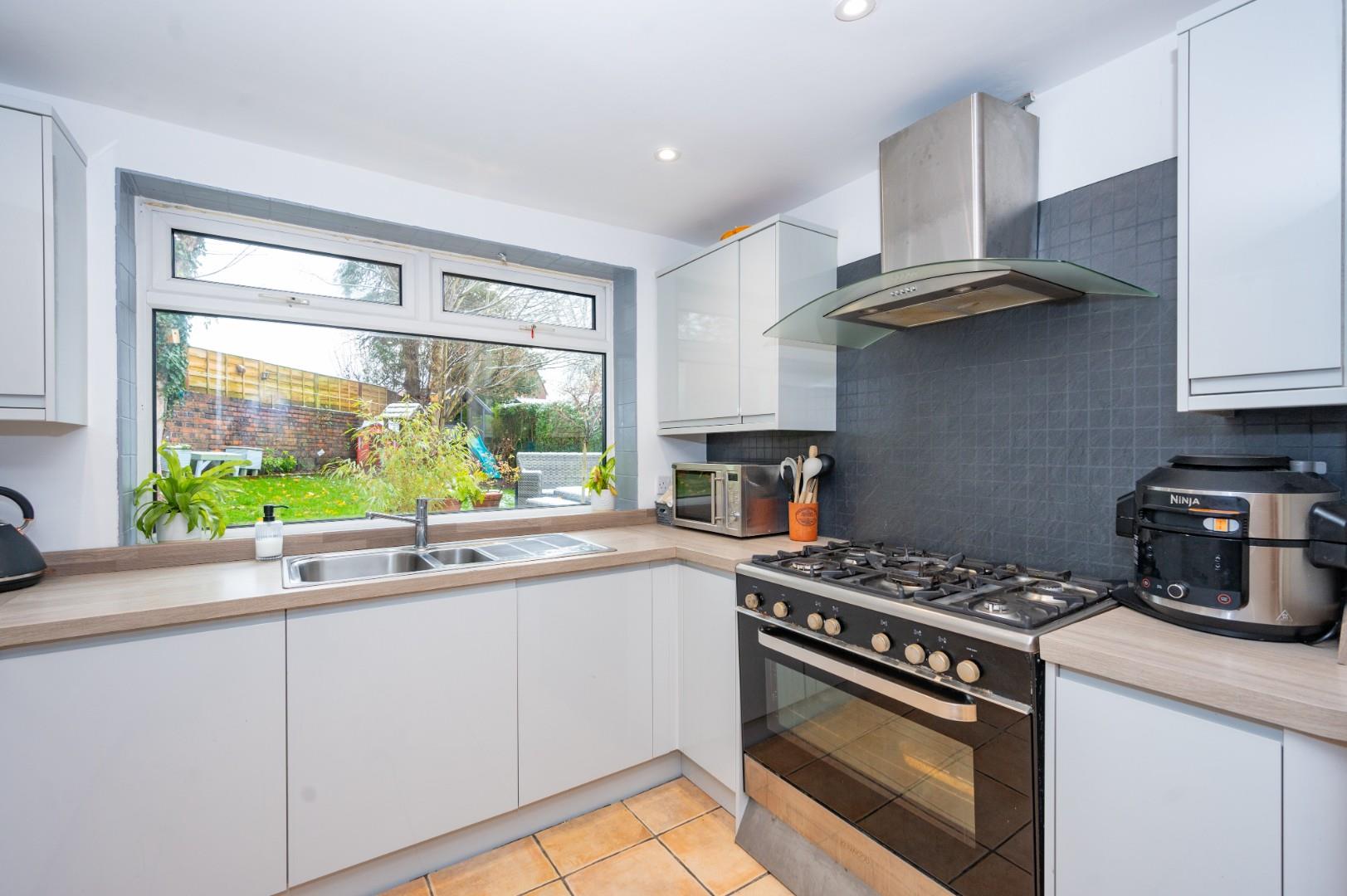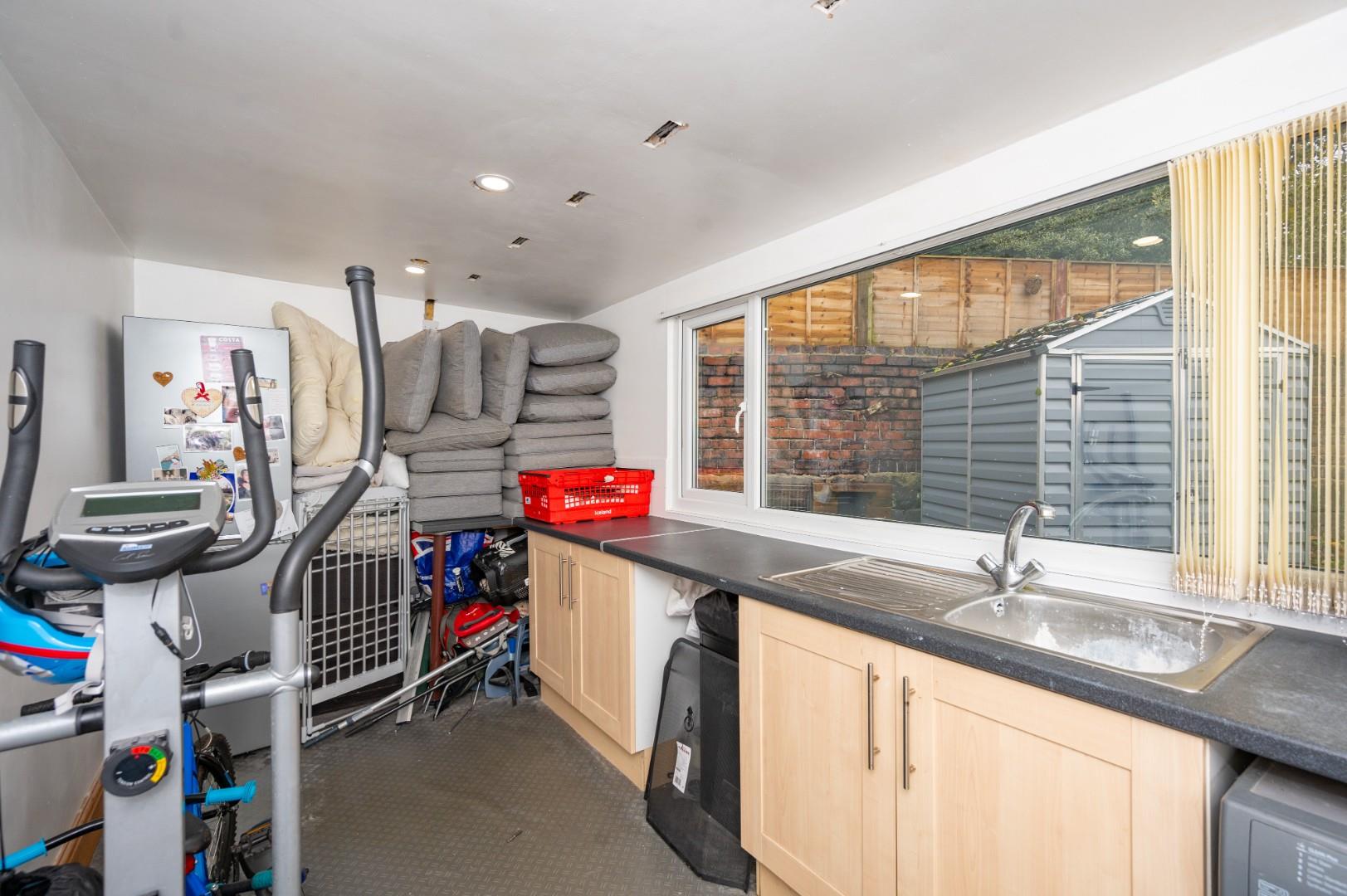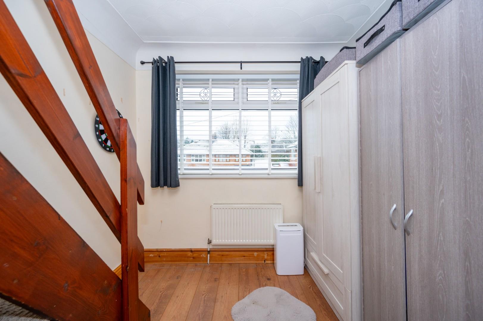 Occupying a desirable corner plot, the property provides ample off-road parking. The rear garden is a private oasis, beautifully landscaped and benefiting from direct access to The Spinny playing field. To the side, the detached garage has been thoughtfully converted into a utility room, games room, and gym. The property has also undergone a full rewire within the last 12 months and has an EPC rating of D with Council Tax Band D - CAN BE CHAIN FREE