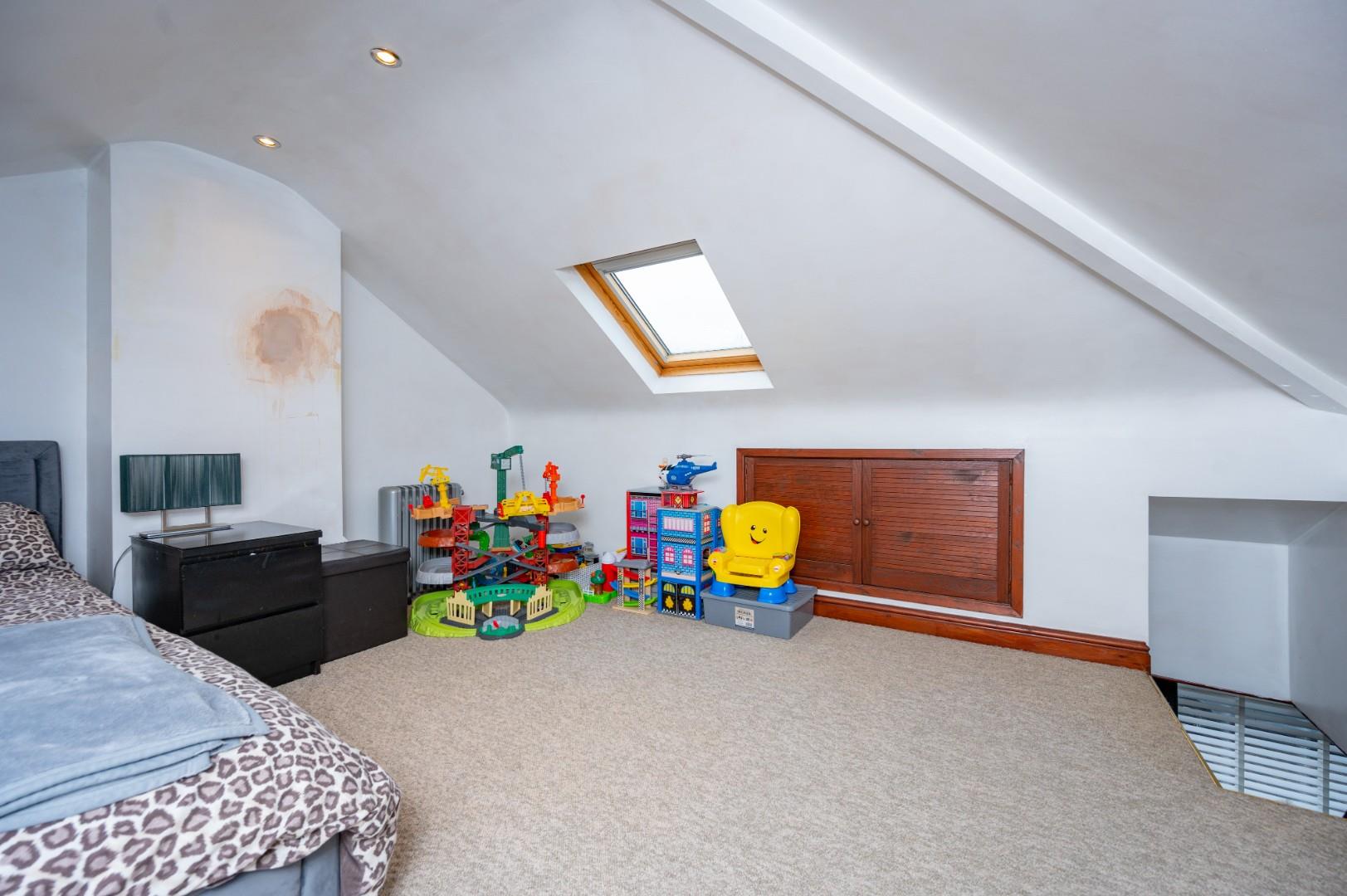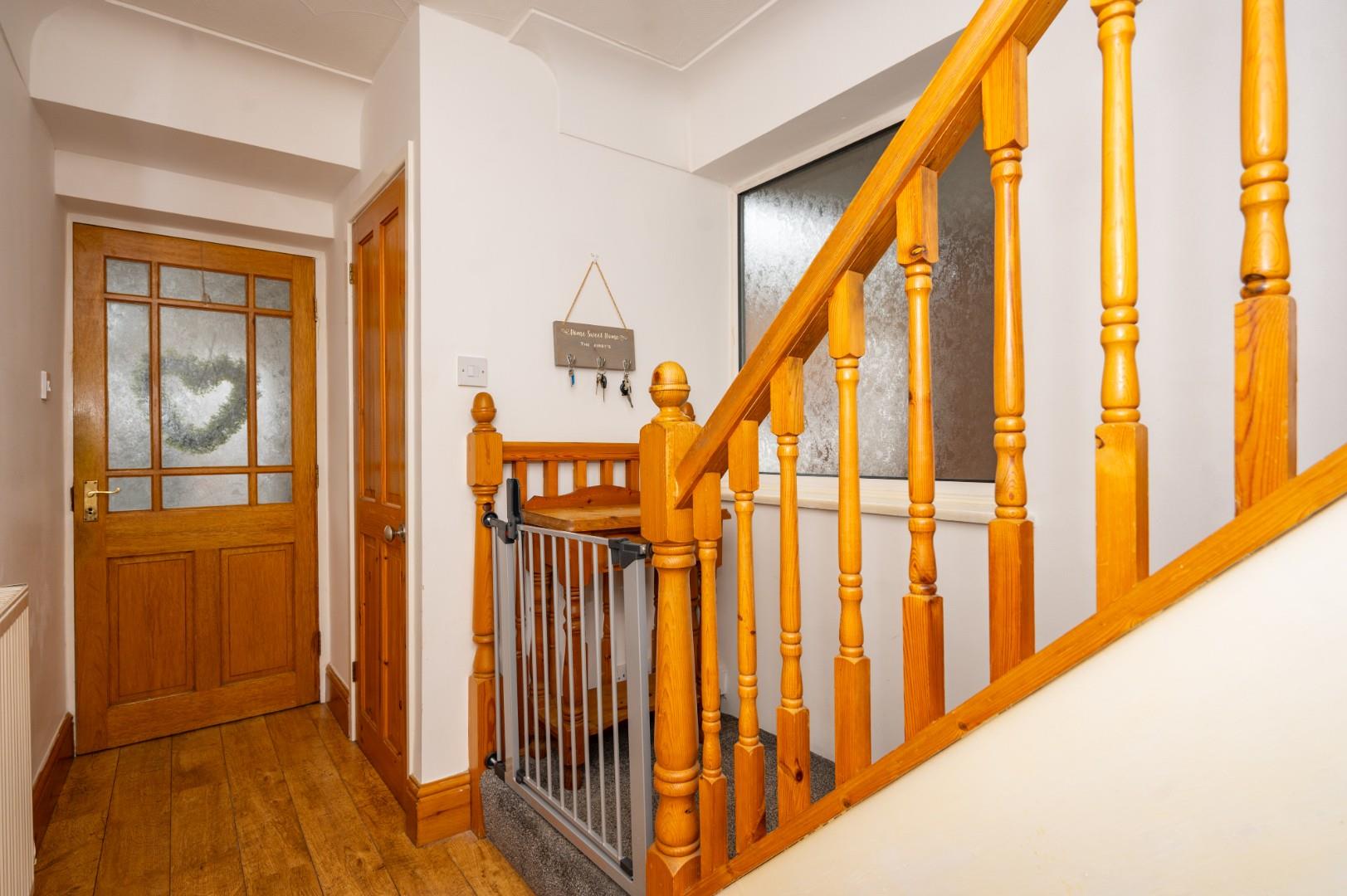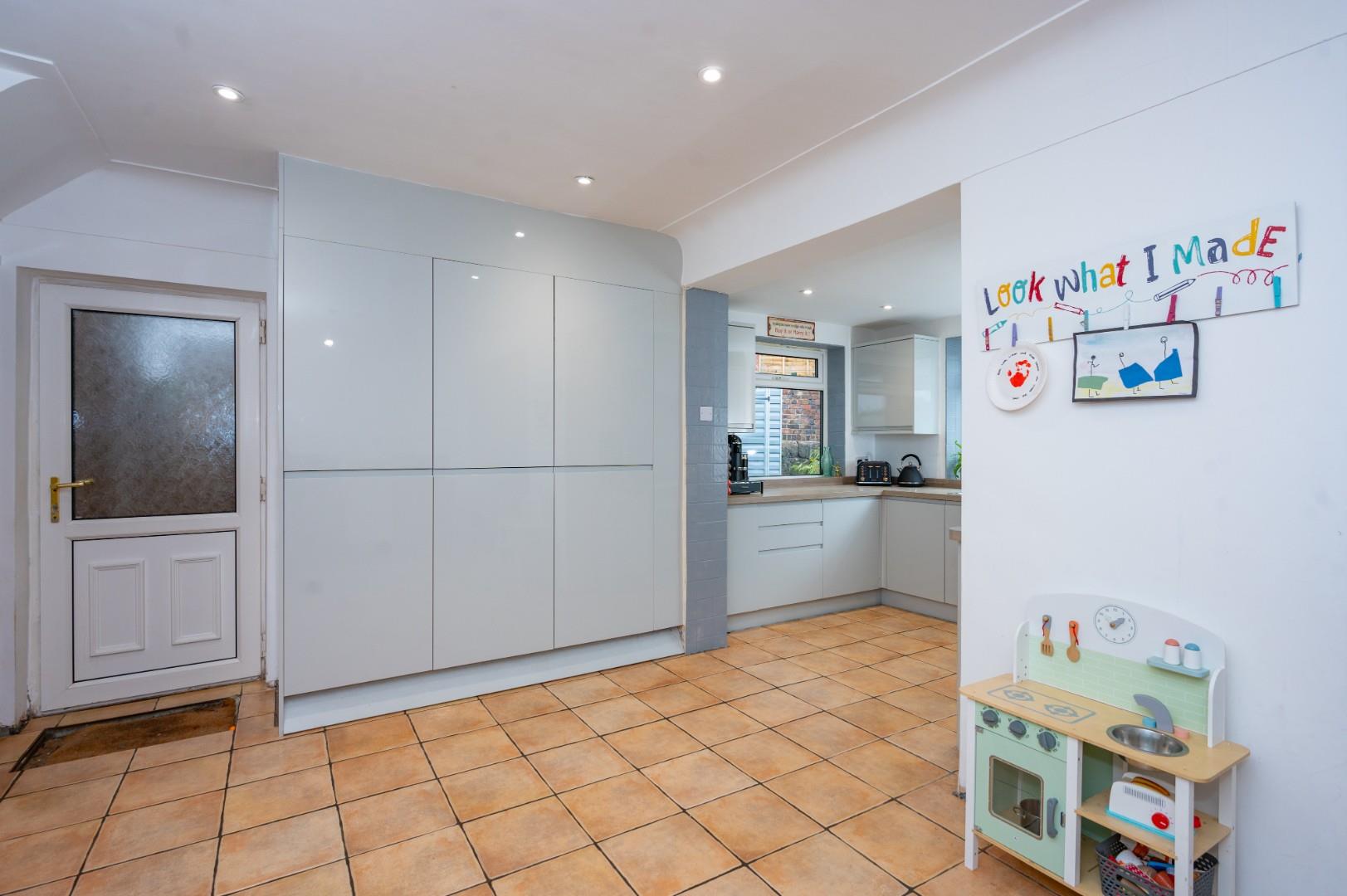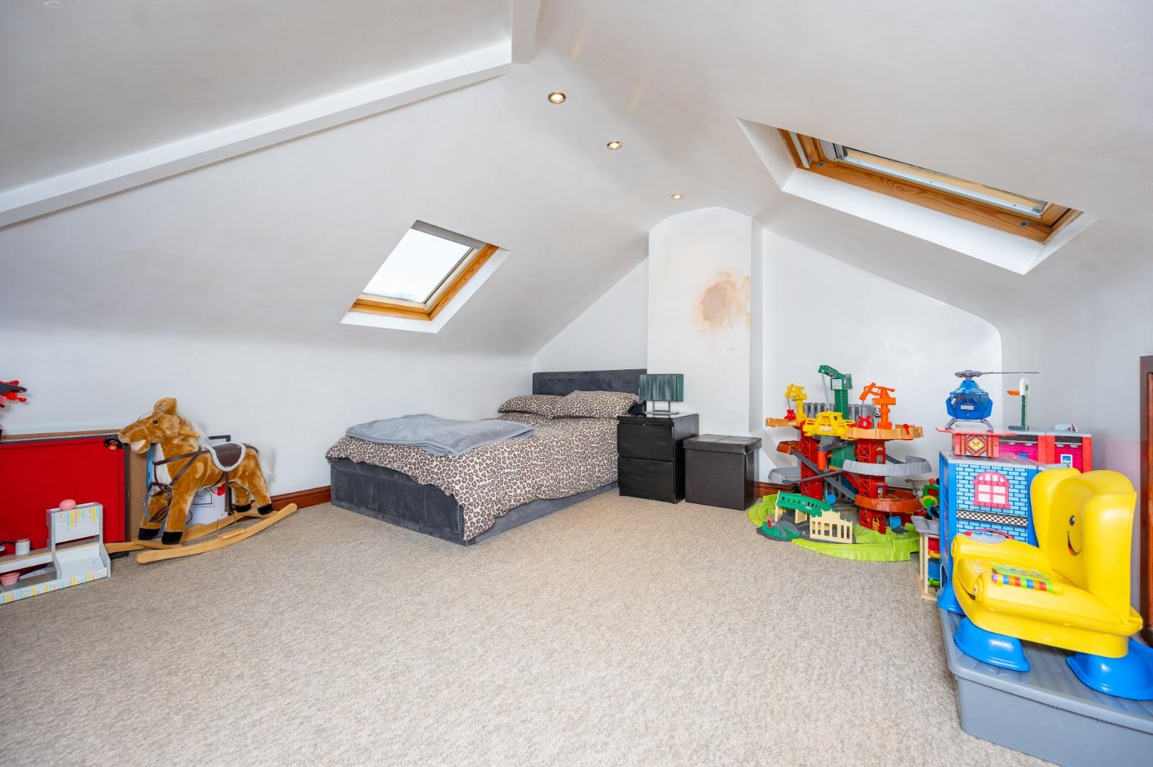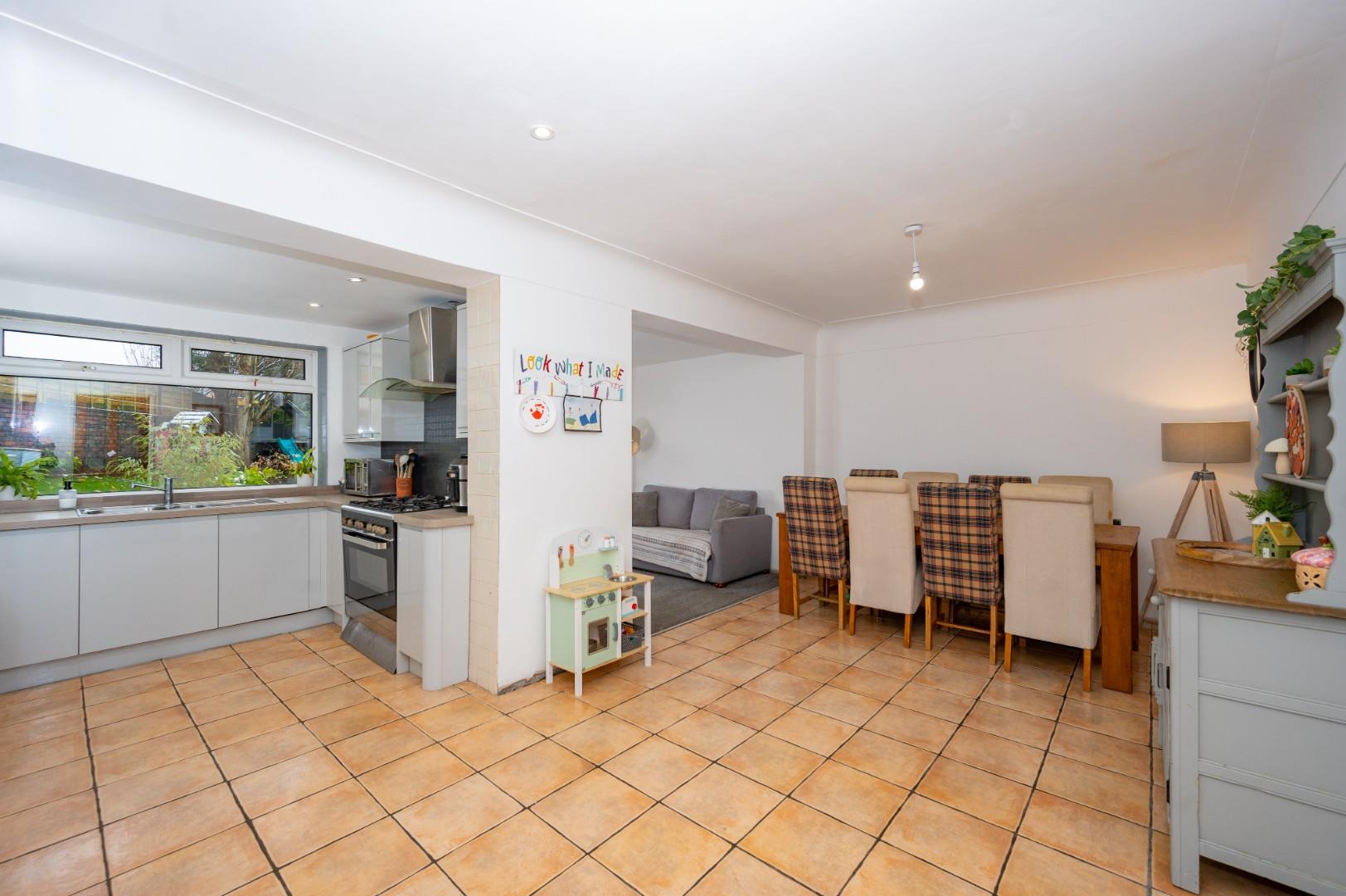 Occupying a desirable corner plot, the property provides ample off-road parking. The rear garden is a private oasis, beautifully landscaped and benefiting from direct access to The Spinny playing field. To the side, the detached garage has been thoughtfully converted into a utility room, games room, and gym. The property has also undergone a full rewire within the last 12 months and has an EPC rating of D with Council Tax Band D - CAN BE CHAIN FREE