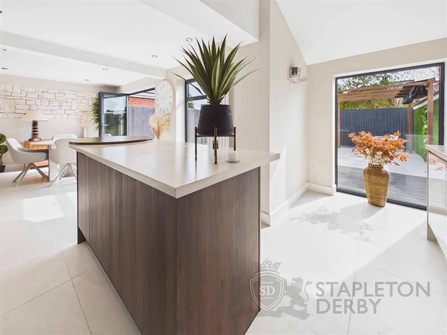 - Central Island, Bi-Fold Doors, Full Integrated Appliances In Kitchen