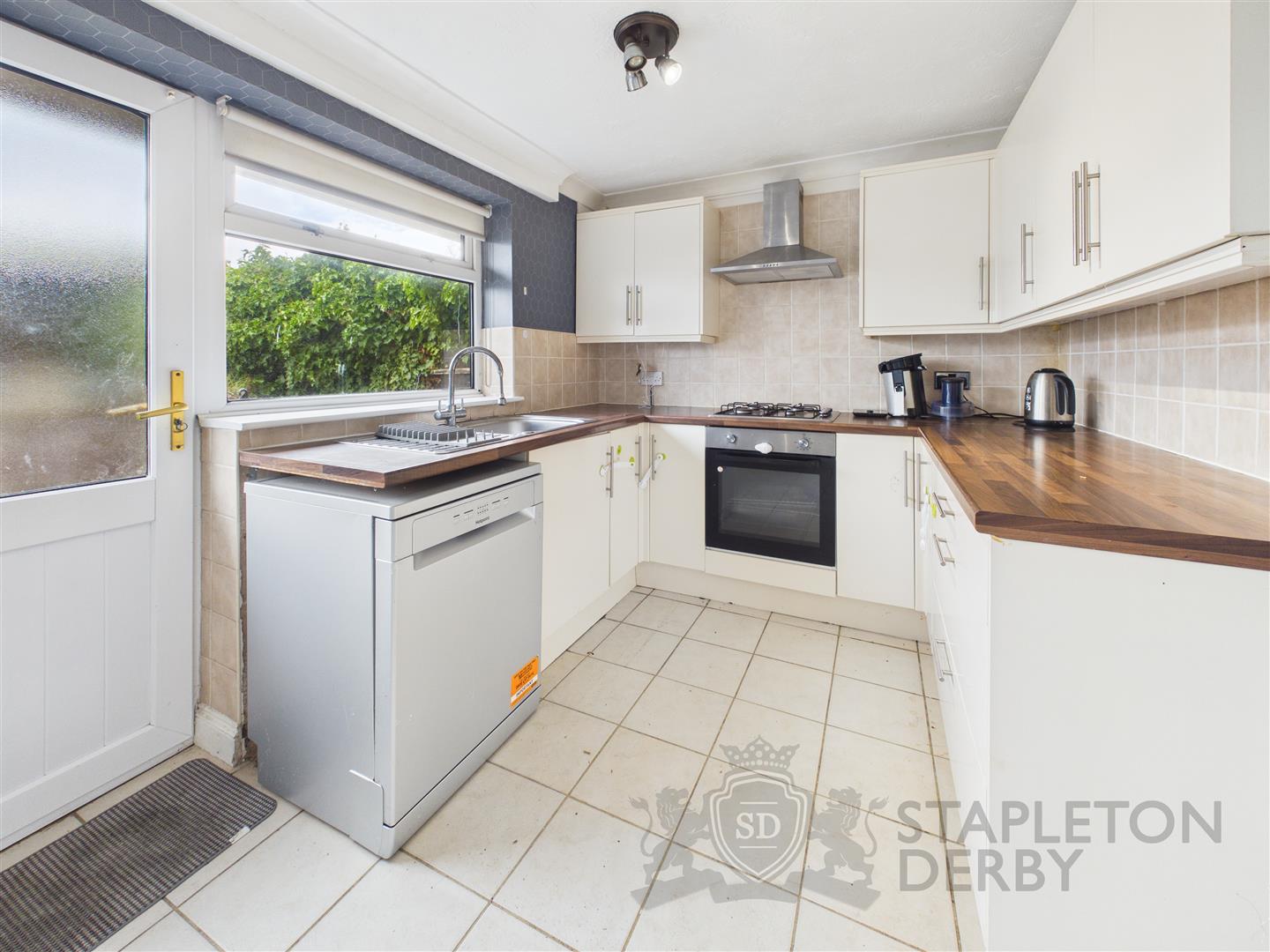 Outside, the property features a good-sized rear garden, ideal for children to play or for hosting summer barbecues. The gated driveway offers parking for one to two vehicles, while a garage at the front aspect adds further convenience and storage options.