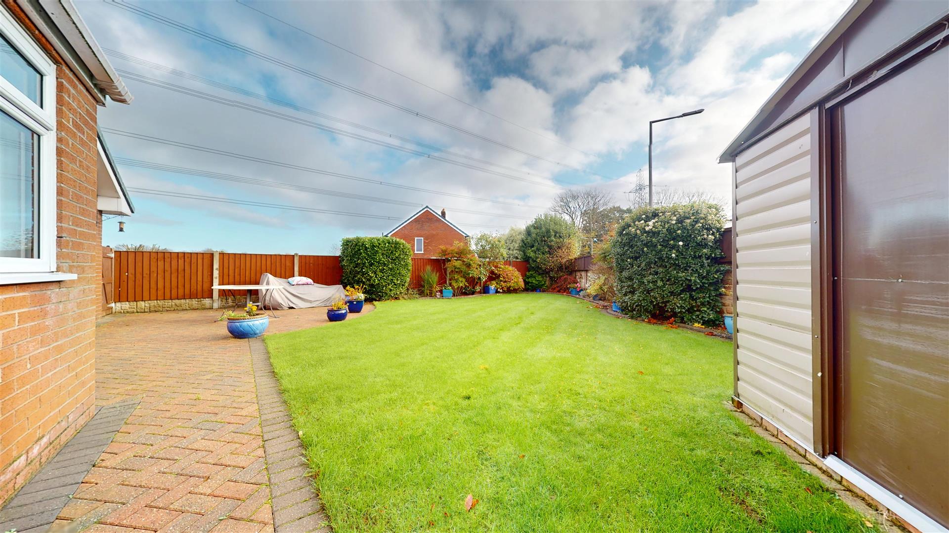 To the rear, the bungalow enjoys a stunning private garden with ample lawn space and a charming flagged seating area, offering an ideal setting for relaxation and outdoor dining.