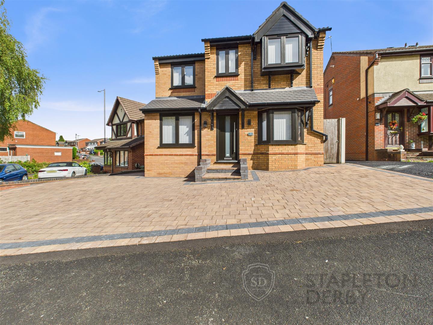 The exterior of the property features a large block-paved driveway, offering ample parking for up to five vehicles, a rare find in residential areas. The home is presented in turn-key condition, allowing for a smooth transition with no onward chain, making it an attractive option for those looking to move in without delay.