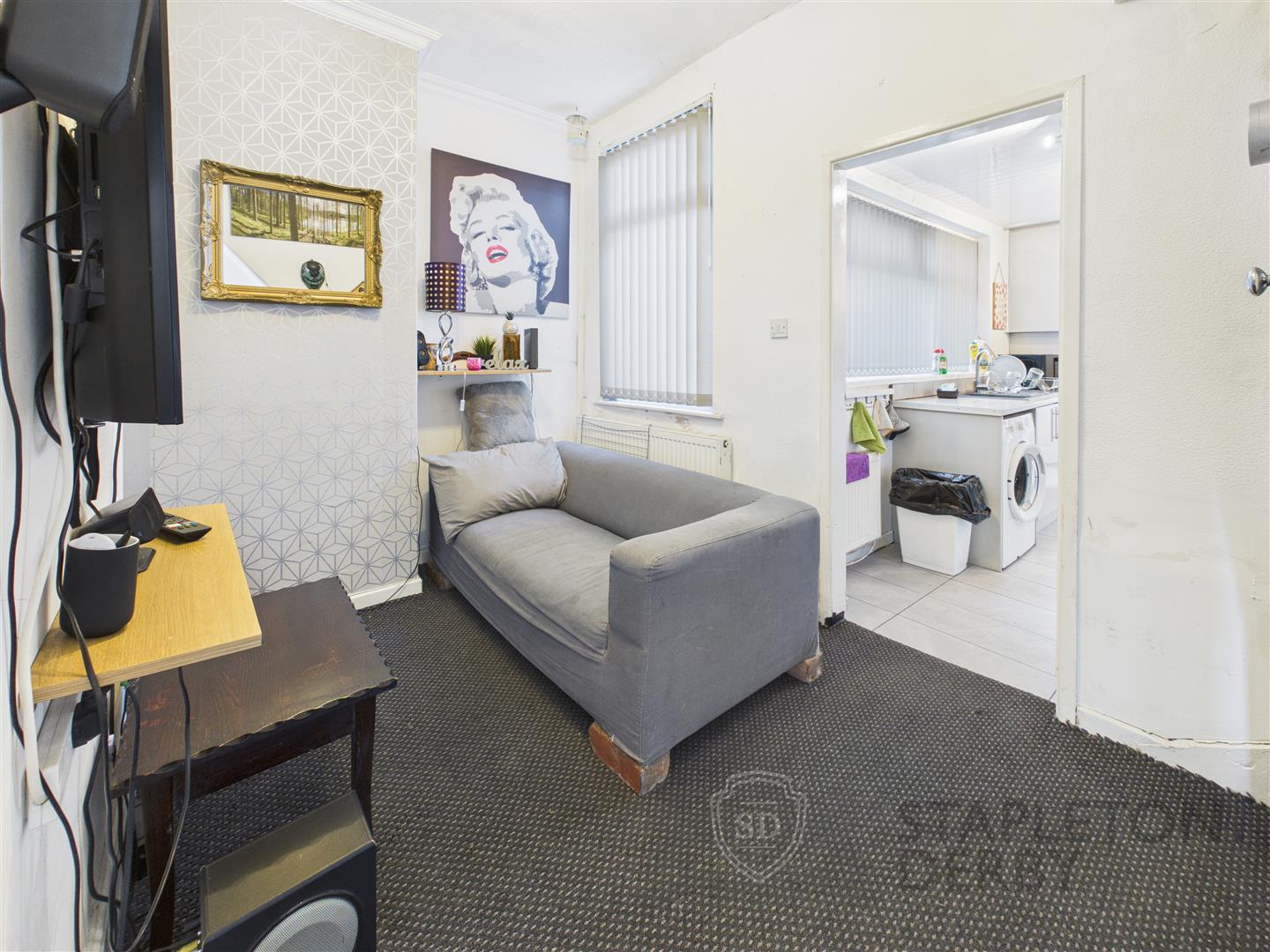 All three bedrooms are fully occupied, with all tenants expressing a desire to remain in situ, ensuring immediate rental income for the new owner. The tenants pay on average £140 per week per room, bills included. The layout flows as an entrance hall, the traditional living room is Bedroom One, there is a communal living room, kitchen, ante space and a white suite bathroom. The first floor has bedroom two and bedroom three. There is also a room to the rear for storage (but could be converted into another bedroom potentially).