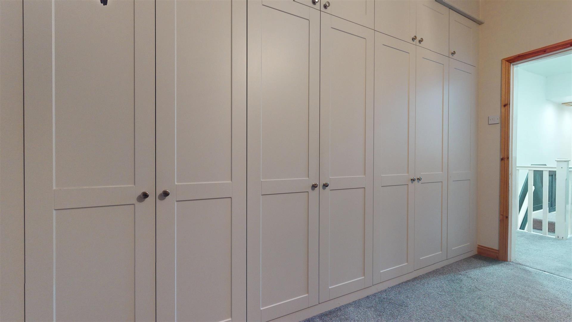 The first floor benefits from a generous landing leading to three well-proportioned bedrooms. The master bedroom features stunning, extensive fitted wardrobes, maximising storage while retaining a sense of luxury. A beautifully presented modern family bathroom completes the accommodation.