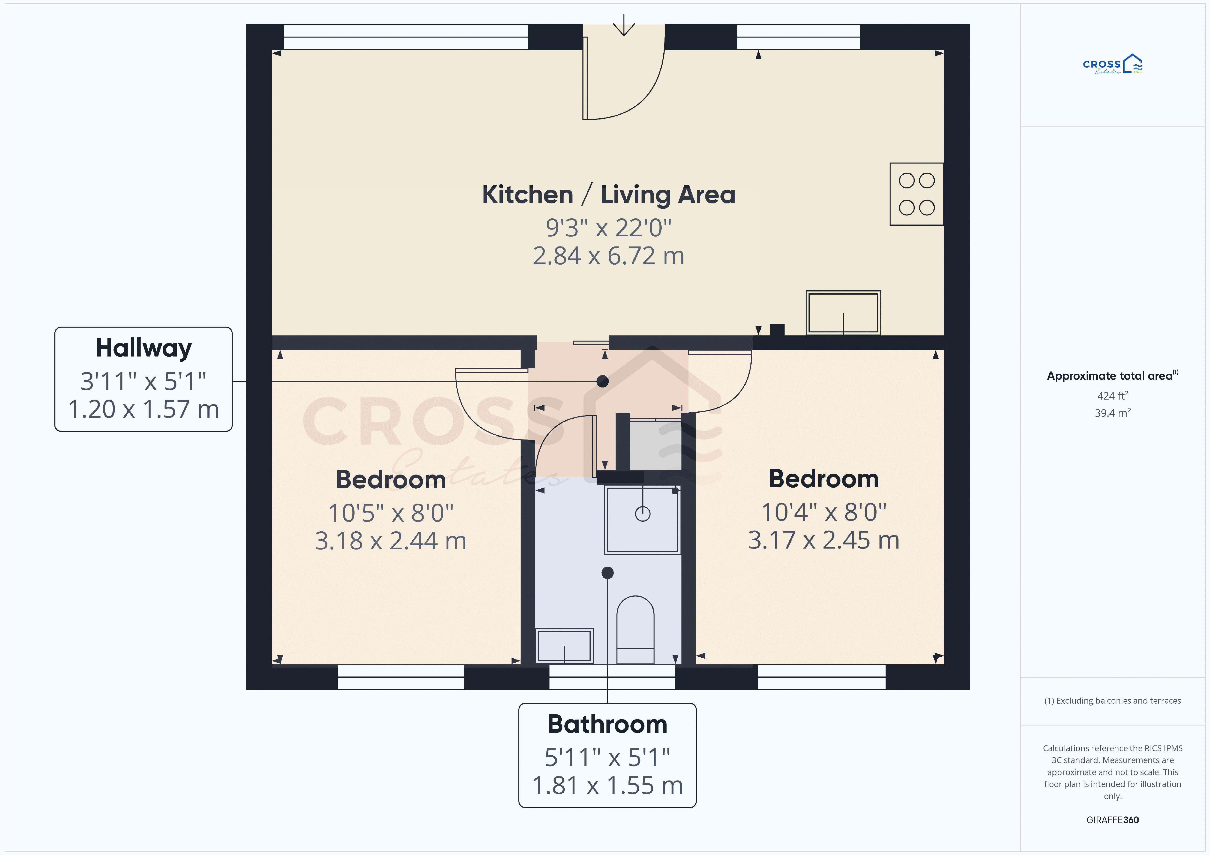 22' 1'' x 9' 4'' (6.72m x 2.84m)