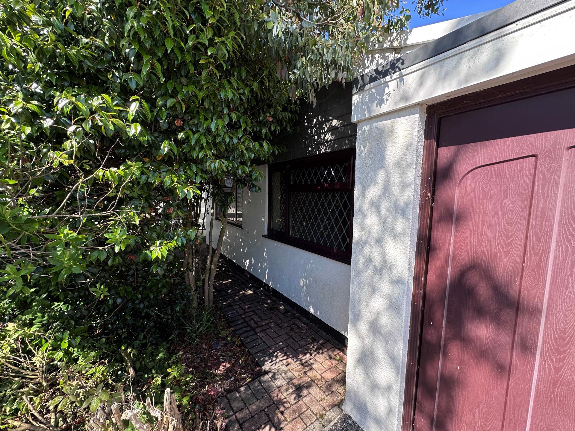 There is a driveway to the front leading to the garage which could hold two vehicles. There is a good sized front garden that currently is overgrown however, there are some mature shrubs and plants.