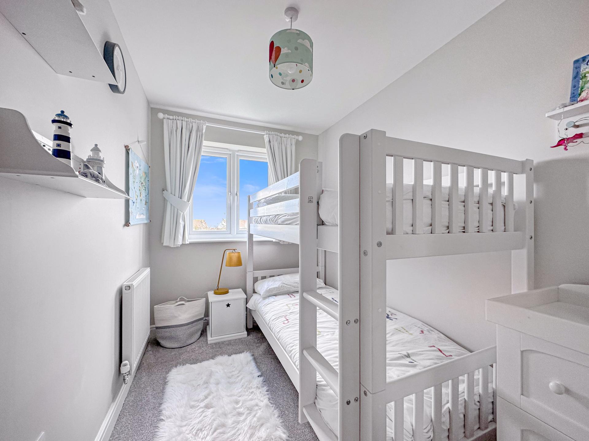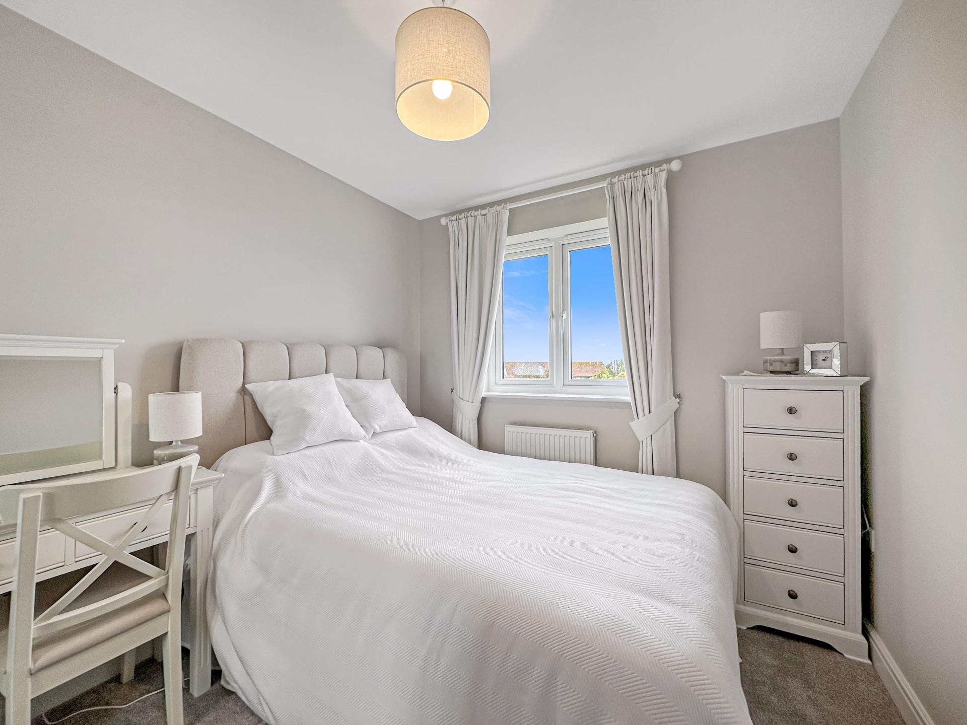 Double glazed window to the rear with distant sea views, power points, radiator, carpeted