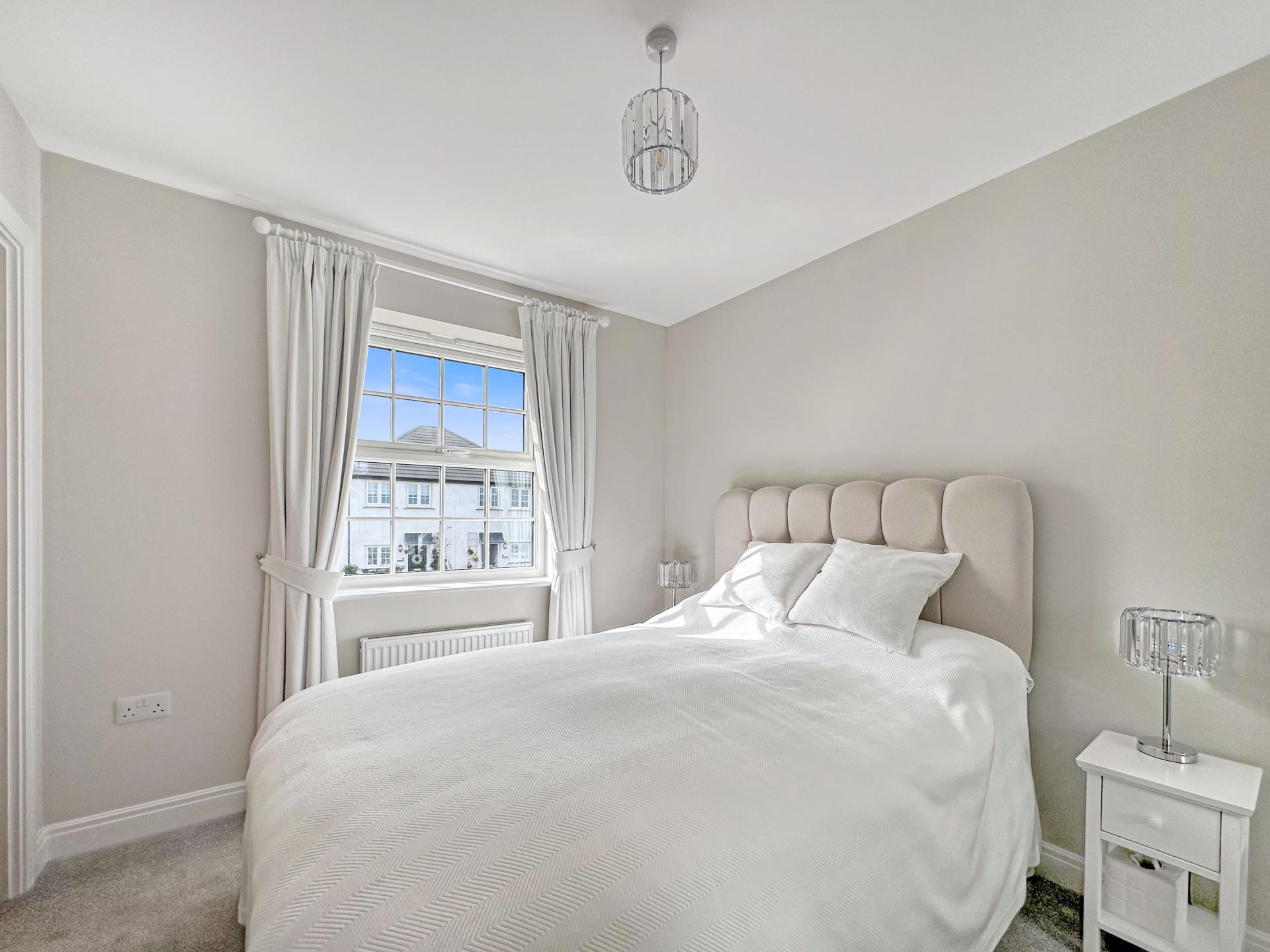 Double glazed window to the front, radiator, ample power points, TV point, carpeted, bespoke fitted mirrored wardrobes, door through to