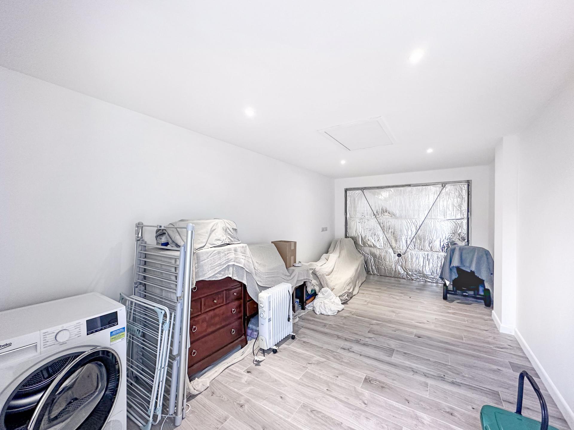 Great sized garage that is fully insulated and ready to use as an office or hobby room with ample power points, inset lighting and access to a large boarded loft with light.