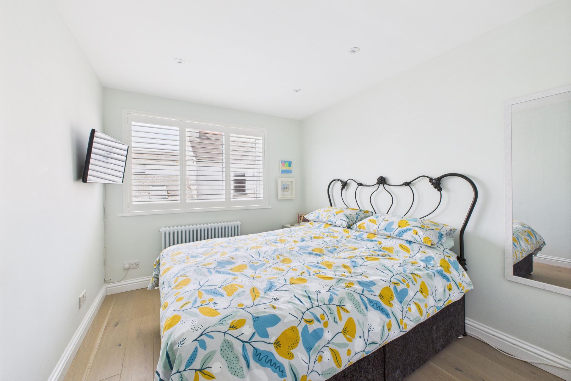 UPVC double glazed window to the rear with window shutters, power points, TV point, radiator, built in wardrobe, wood flooring