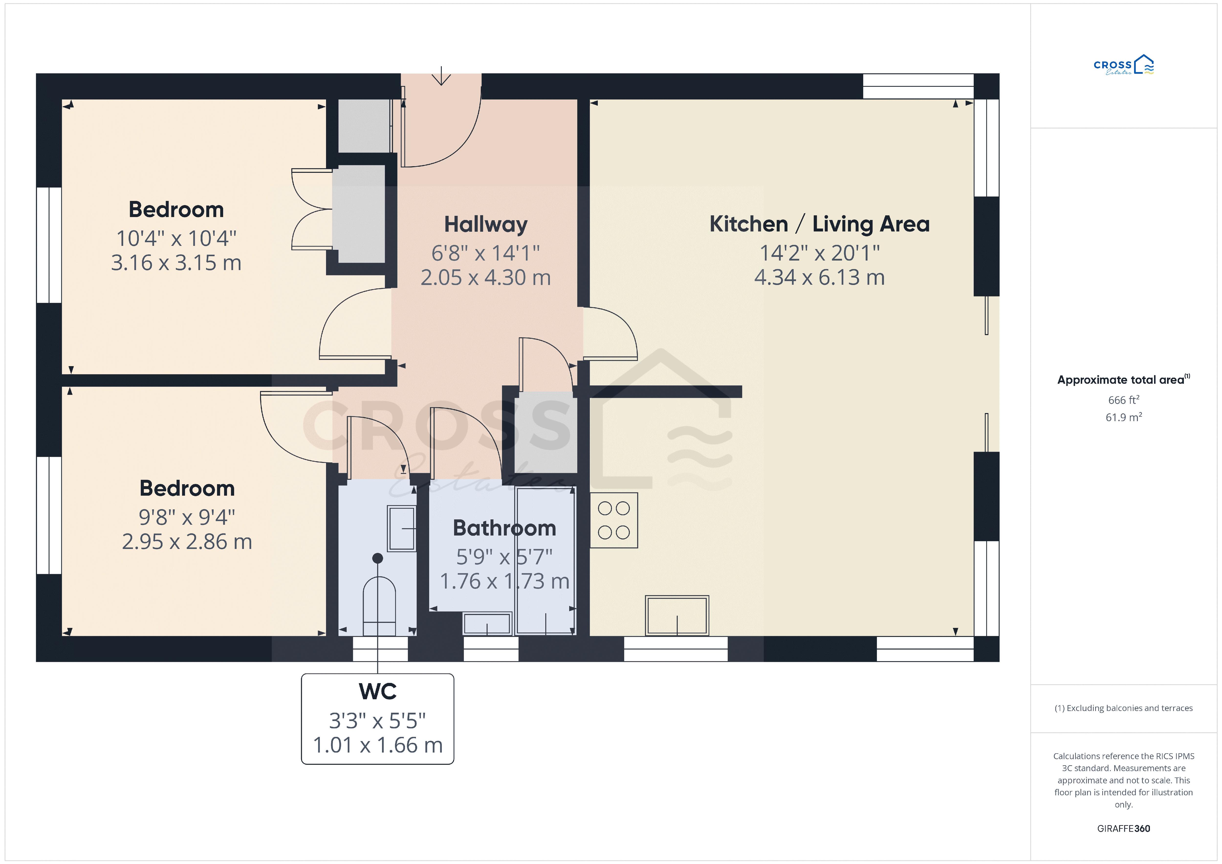 10' 4'' x 10' 4'' (3.16m x 3.15m)